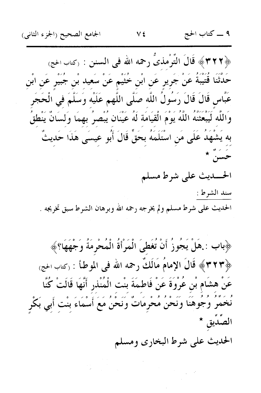 322 - قَالَ التِّرْمِذِىُّ رحمه الله فى السنن: (كتاب الحج)
