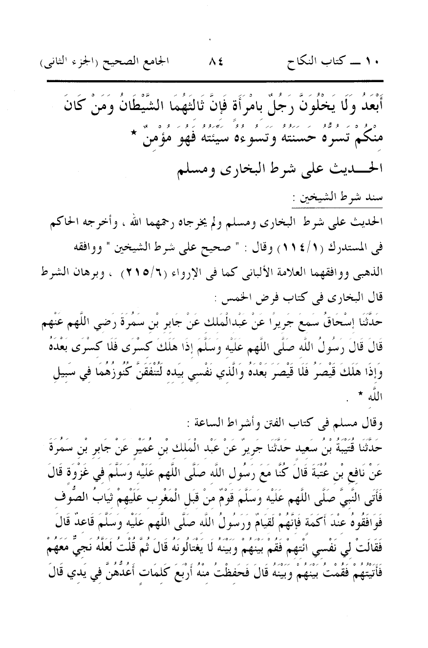 كتاب الجامع الصحيح فيما كان على شرط الشيخين أو أحدهما ولم يخرجاه (اسم الجزء: 2)