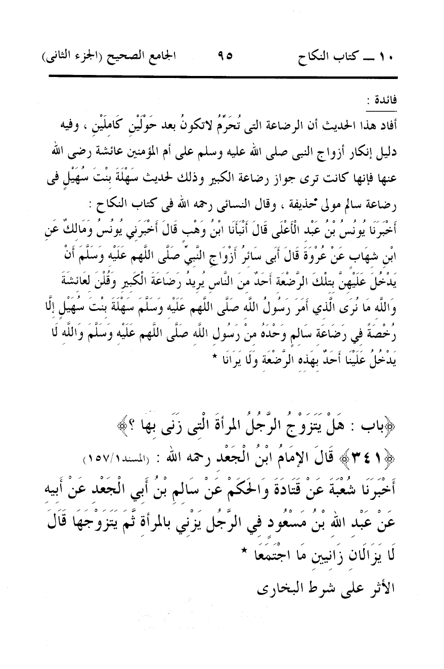 341 - قَالَ الإمَامُ ابْنُ الْجَعْدِ رحمه الله: (المسند1/ 157)