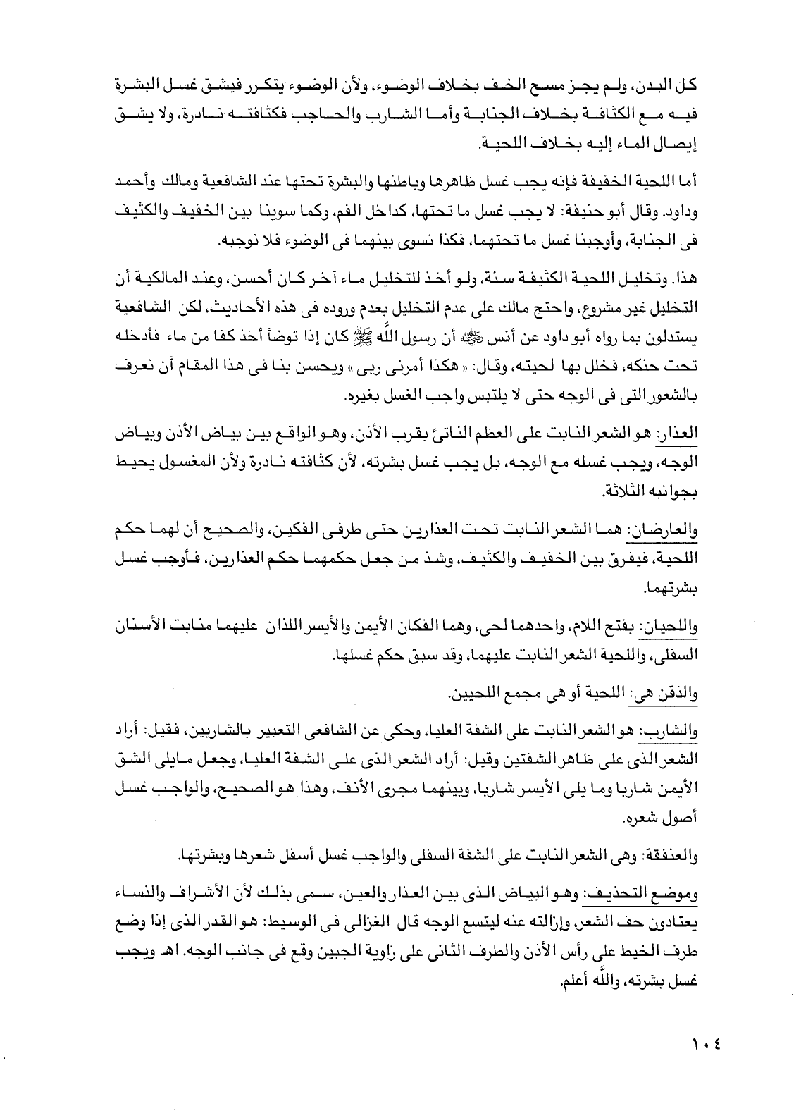 والعنفقة: وهي الشعر النابت على الشفة السفلى والواجب غسل أسفل شعرها وبشرتها.