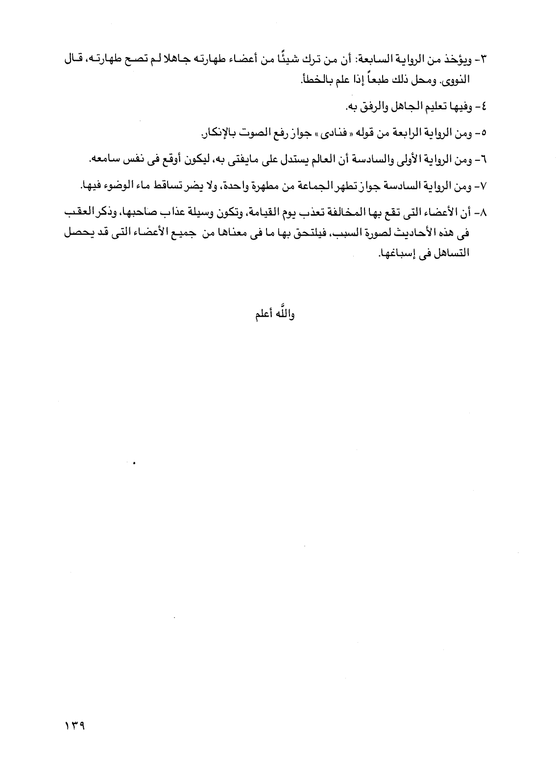 3 - ويؤخذ من الرواية السابعة: أن من ترك شيئا من أعضاء طهارته جاهلا لم تصح طهارته، قال النووي. ومحل ذلك طبعا إذا علم بالخطأ.