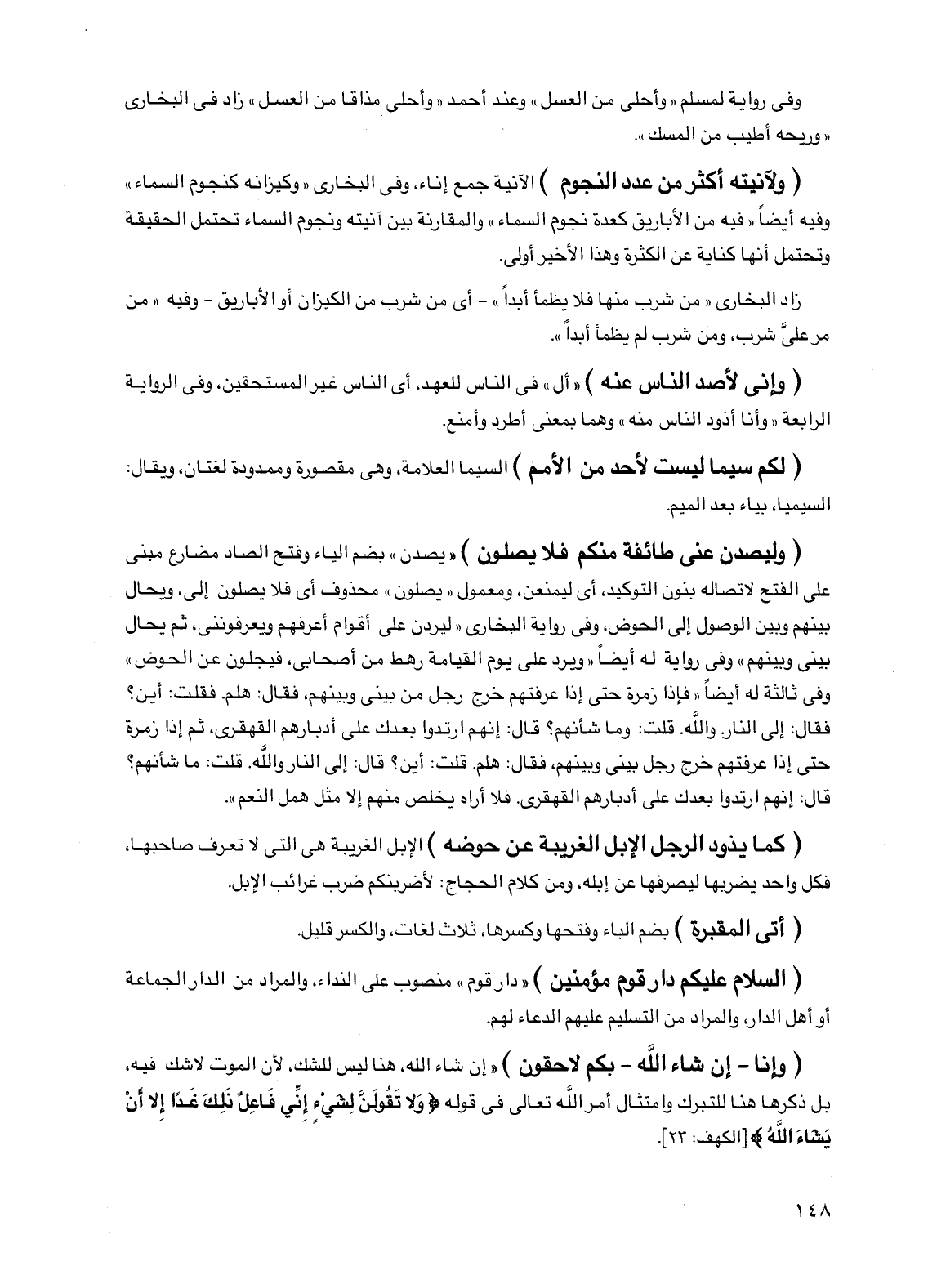 (ولآنيته أكثر من عدد النجوم) الآنية جمع إناء، وفي البخاري "وكيزانه كنجوم السماء" وفيه أيضا "فيه من الأباريق كعدة نجوم السماء" والمقارنة بين آنيته ونجوم السماء تحتمل الحقيقة وتحتمل أنها كناية عن الكثرة وهذا الأخير أولى.
