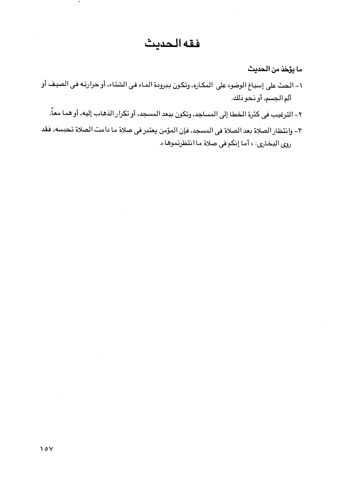 1 - الحث على إسباغ الوضوء على المكاره، وتكون ببرودة الماء في الشتاء، أو حرارته في الصيف أو ألم الجسم، أو نحو ذلك.