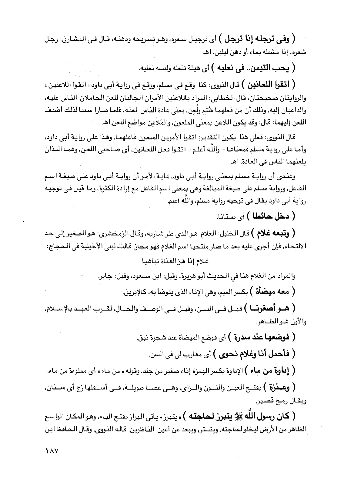 قال النووي: فعلى هذا يكون التقدير: اتقوا الأمرين الملعون فاعلهما، وهذا على رواية أبي داود، وأما على رواية مسلم فمعناها -والله أعلم- اتقوا فعل اللعانين، أي صاحبي اللعن، وهما اللذان يلعنهما الناس في العادة. اهـ.