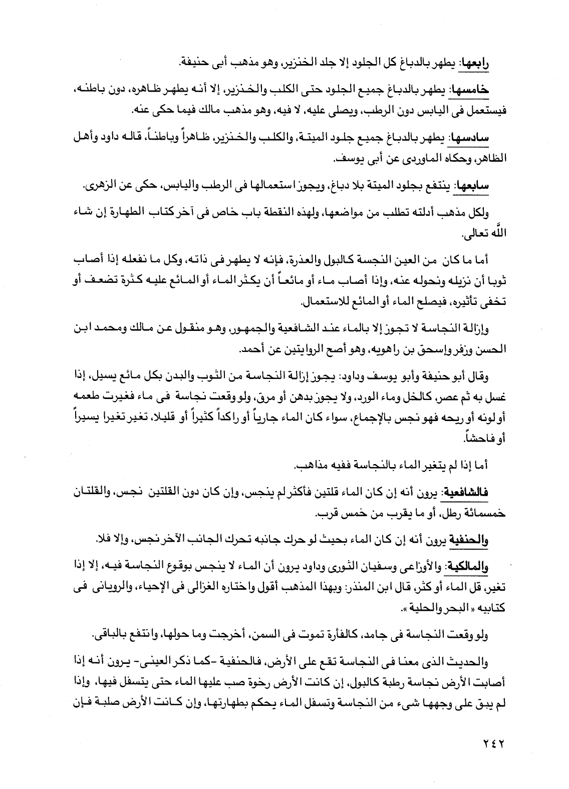 ولكل مذهب أدلته تطلب من مواضعها، ولهذه النقطة باب خاص في آخر كتاب الطهارة إن شاء الله تعالى.