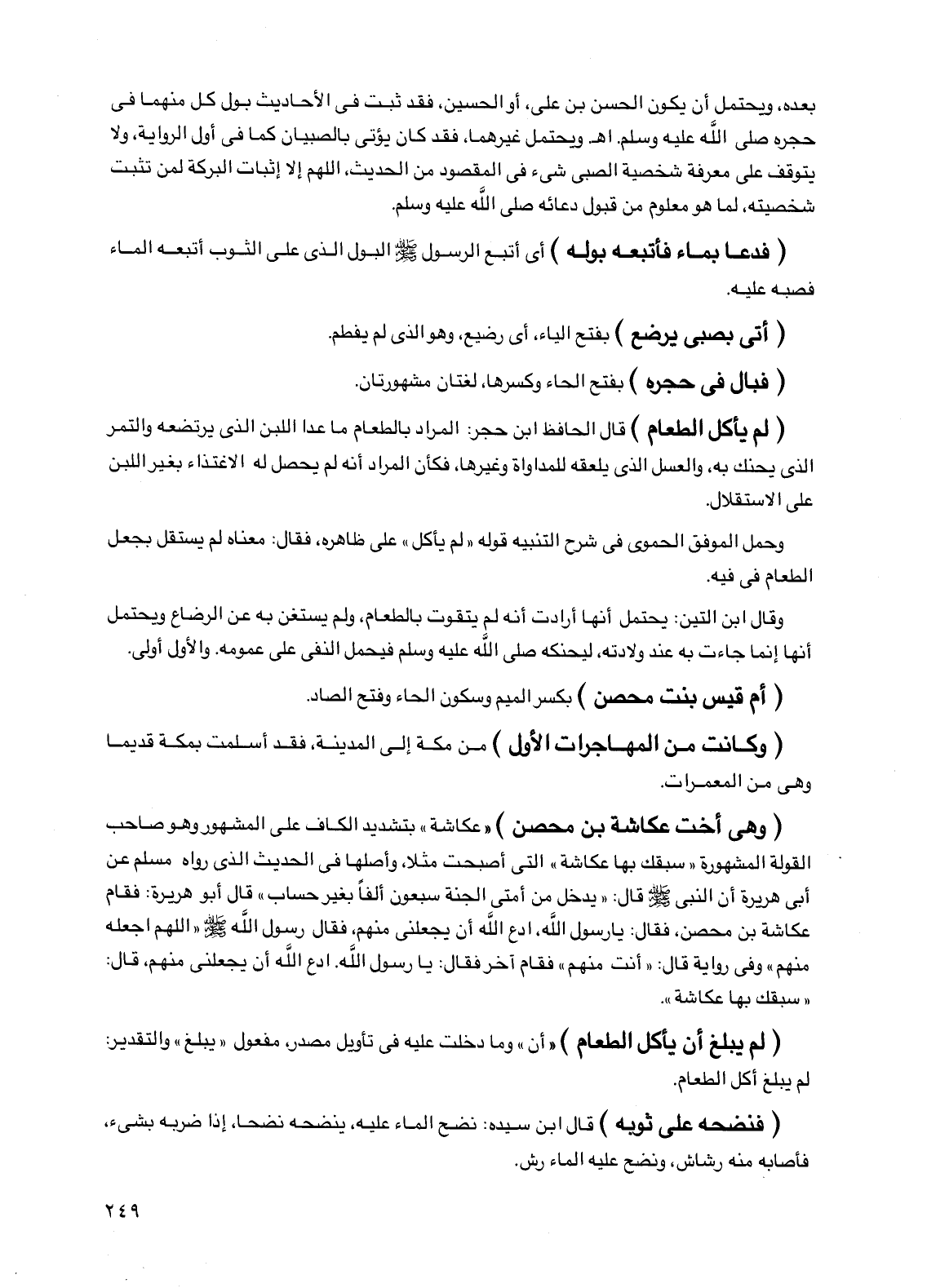 (وهي أخت عكاشة بن محصن) "عكاشة" بتشديد الكاف على المشهور وهو صاحب القولة المشهورة "سبقك بها عكاشة" التي أصبحت مثلا، وأصلها في الحديث الذي رواه مسلم عن أبي هريرة أن النبي صلى الله عليه وسلم قال: "يدخل من أمتي الجنة سبعون ألفا بغير حساب" قال أبو هريرة: فقام عكاشة بن محصن، فقال: يا رسول الله، ادع الله أن يجعلني منهم، فقال رسول الله صلى الله عليه وسلم "اللهم اجعله منهم" وفي رواية قال: "أنت منهم" فقام آخر فقال: يا رسول الله. ادع الله أن يجعلني منهم، قال: "سبقك بها عكاشة".
