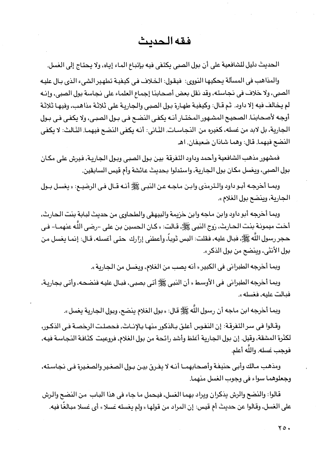 وبما أخرجه أبو داود والترمذي وابن ماجه عن النبي صلى الله عليه وسلم أنه قال في الرضيع: "يغسل بول الجارية، وينضح بول الغلام".