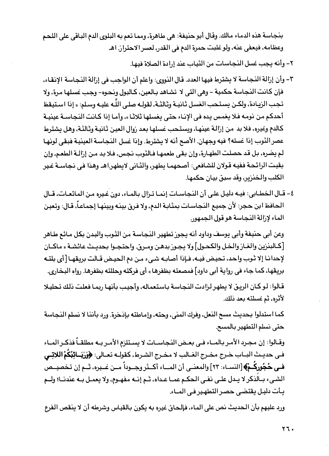 2 - وأنه يجب غسل النجاسات من الثياب عند إرادة الصلاة فيها.