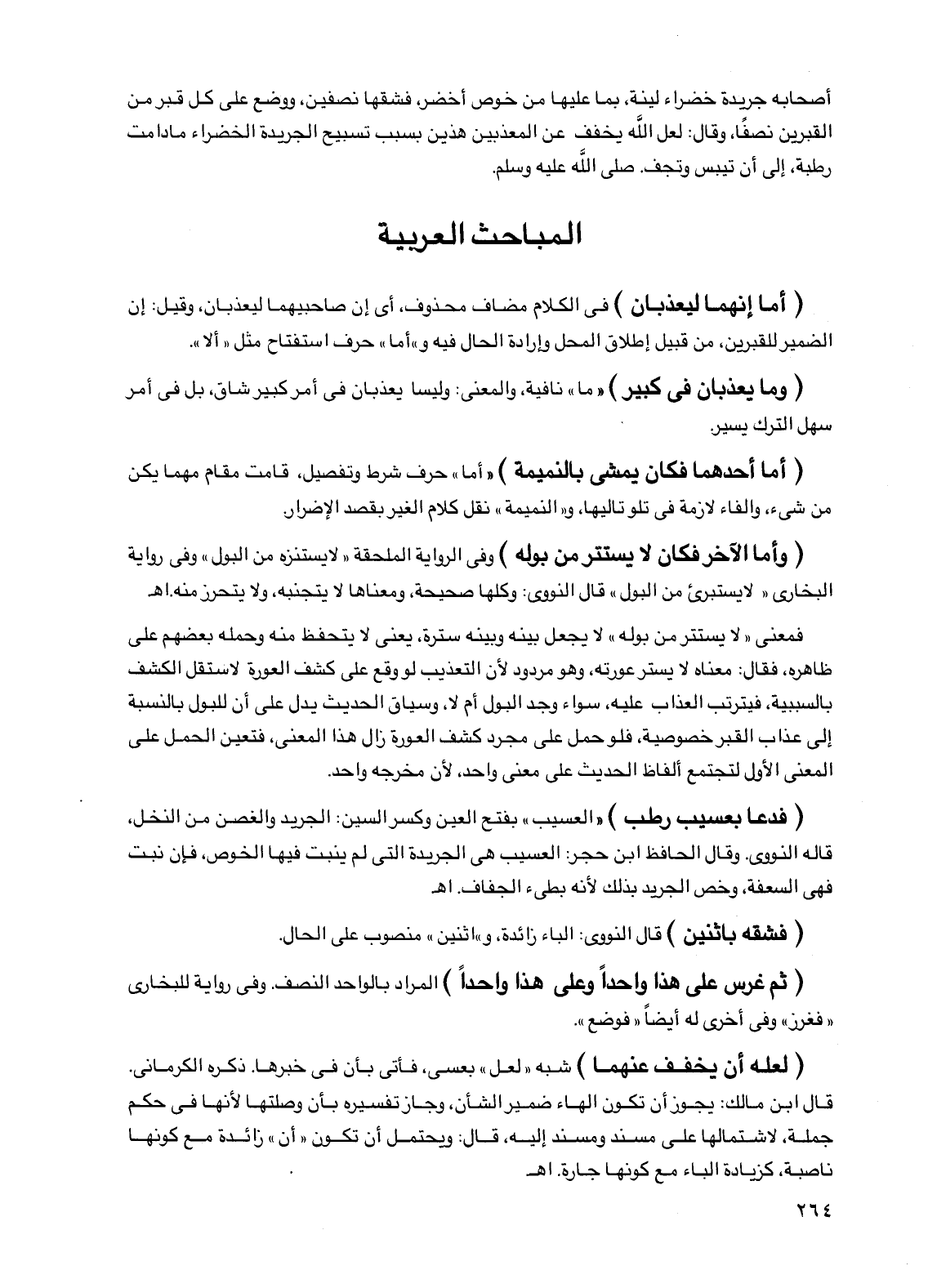 (أما إنهما ليعذبان) في الكلام مضاف محذوف، أي إن صاحبيهما ليعذبان، وقيل: إن الضمير للقبرين، من قبيل إطلاق المحل وإرادة الحال فيه و"أما" حرف استفتاح مثل "ألا".