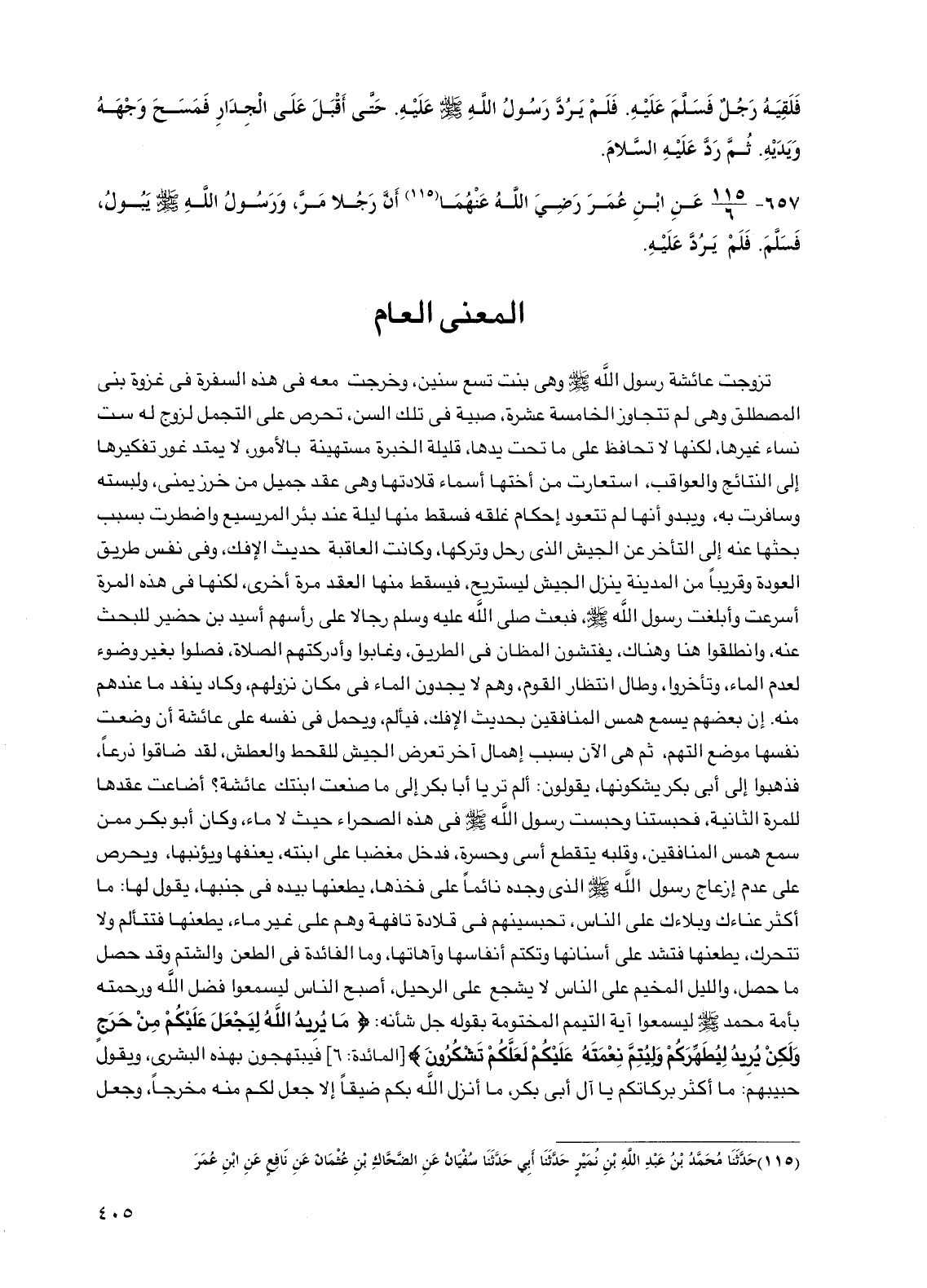 إن بعضهم يسمع همس المنافقين بحديث الإفك، فيألم، ويحمل في نفسه على عائشة أن وضعت نفسها موضع التهم، ثم هي الآن بسبب إهمال آخر تعرض الجيش للقحط والعطش، لقد ضاقوا ذرعا، فذهبوا إلى أبي بكر يشكونها، يقولون: ألم تر يا أبا بكر إلى ما صنعت ابنتك عائشة؟ أضاعت عقدها للمرة الثانية، فحبستنا وحبست رسول الله صلى الله عليه وسلم في هذه الصحراء حيث لا ماء، وكان أبو بكر ممن سمع همس المنافقين، وقلبه يتقطع أسى وحسرة، فدخل مغضبا على ابنته، يعنفها ويؤنبها، ويحرص على عدم إزعاج رسول الله صلى الله عليه وسلم الذي وجده نائما على فخذها، يطعنها بيده في جنبها، يقول لها: ما أكثر عناءك وبلاءك على الناس، تحبسينهم في قلادة تافهة وهم على غير ماء، يطعنها فتتألم ولا تتحرك، يطعنها فتشد على أسنانها وتكتم أنفاسها وآهاتها، وما الفائدة في الطعن والشتم وقد حصل ما حصل، والليل المخيم على الناس لا يشجع على الرحيل، أصبح الناس ليسمعوا فضل الله ورحمته بأمة محمد صلى الله عليه وسلم ليسمعوا آية التيمم المختومة بقوله جل شأنه: {ما يريد الله ليجعل عليكم من حرج ولكن يريد ليطهركم وليتم نعمته عليكم لعلكم تشكرون} [المائدة: 6] فيبتهجون بهذه البشرى، ويقول حبيبهم: ما أكثر بركاتكم يا آل أبي بكر، ما أنزل الله بكم ضيقا إلا جعل لكم منه مخرجا، وجعل