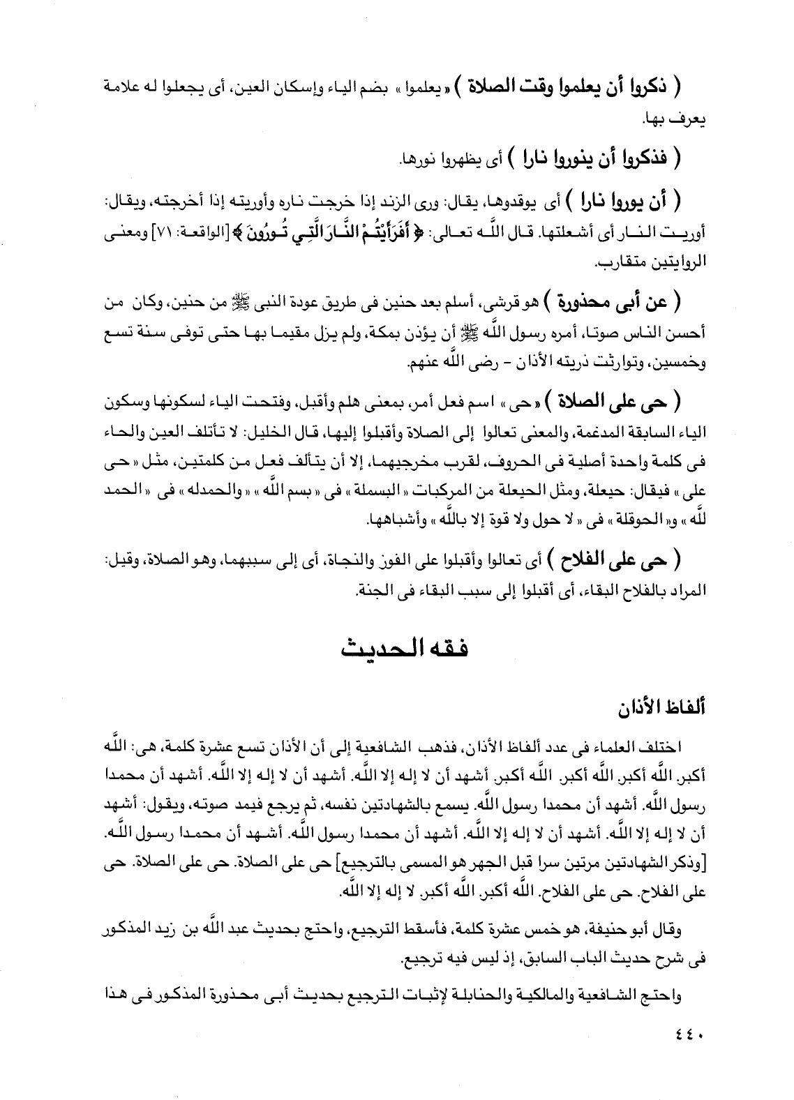 (حي على الفلاح) أي تعالوا وأقبلوا على الفوز والنجاة، أي إلى سببهما، وهو الصلاة، وقيل: المراد بالفلاح البقاء، أي أقبلوا إلى سبب البقاء في الجنة.