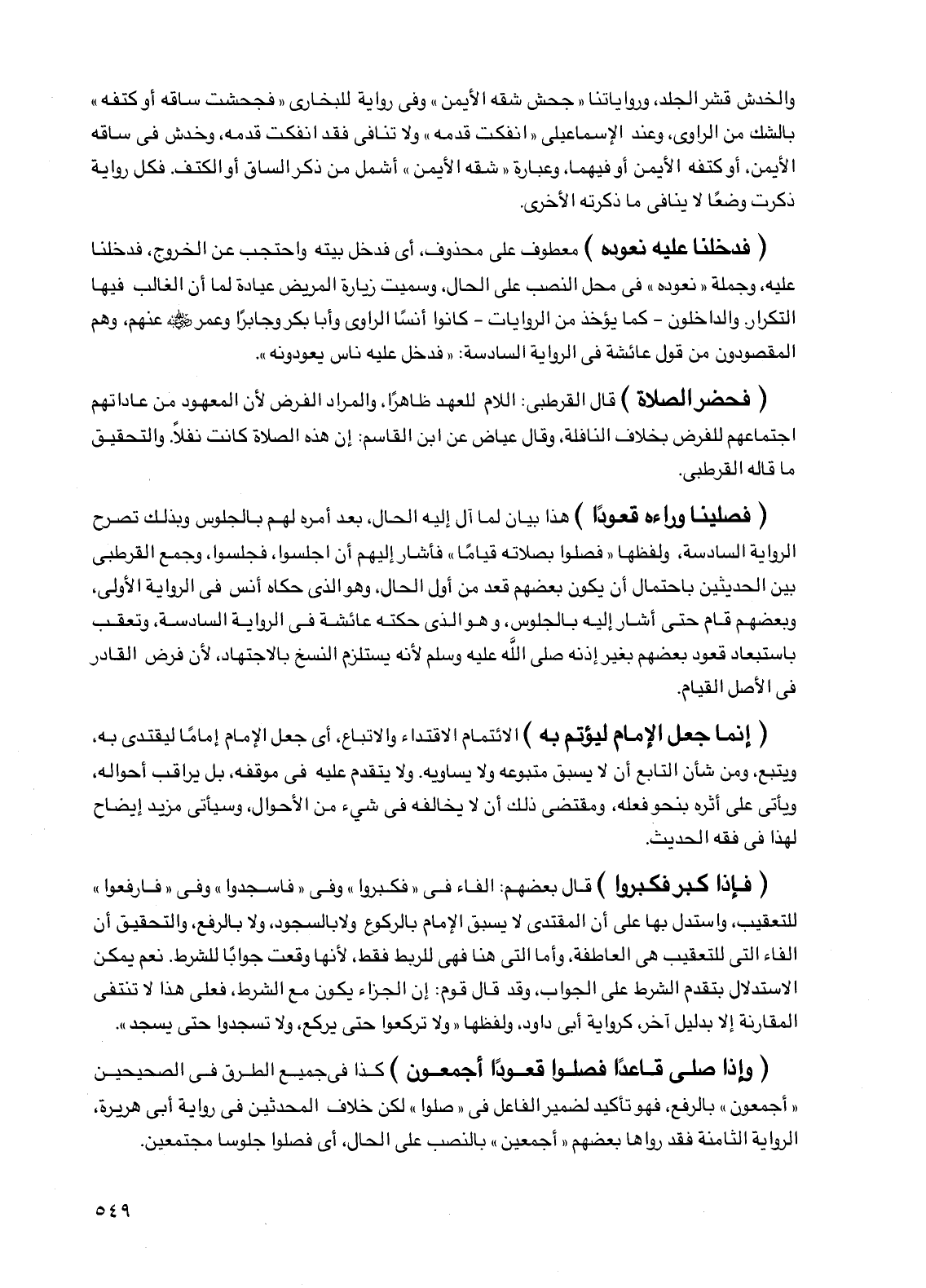 (فإذا كبر فكبروا) قال بعضهم: الفاء في "فكبروا" وفي "فاسجدوا" وفي "فارفعوا" للتعقيب، واستدل بها على أن المقتدي لا يسبق الإمام بالركوع ولا بالسجود، ولا بالرفع، والتحقيق أن الفاء التي للتعقيب هي العاطفة، وأما التي هنا فهي للربط فقط، لأنها وقعت جوابا للشرط. نعم يمكن الاستدلال بتقدم الشرط على الجواب، وقد قال قوم: إن الجزاء يكون مع الشرط، فعلى هذا لا تنتفى المقارنة إلا بدليل آخر، كرواية أبي داود، ولفظها "ولا تركعوا حتى يركع، ولا تسجدوا حتى يسجد".