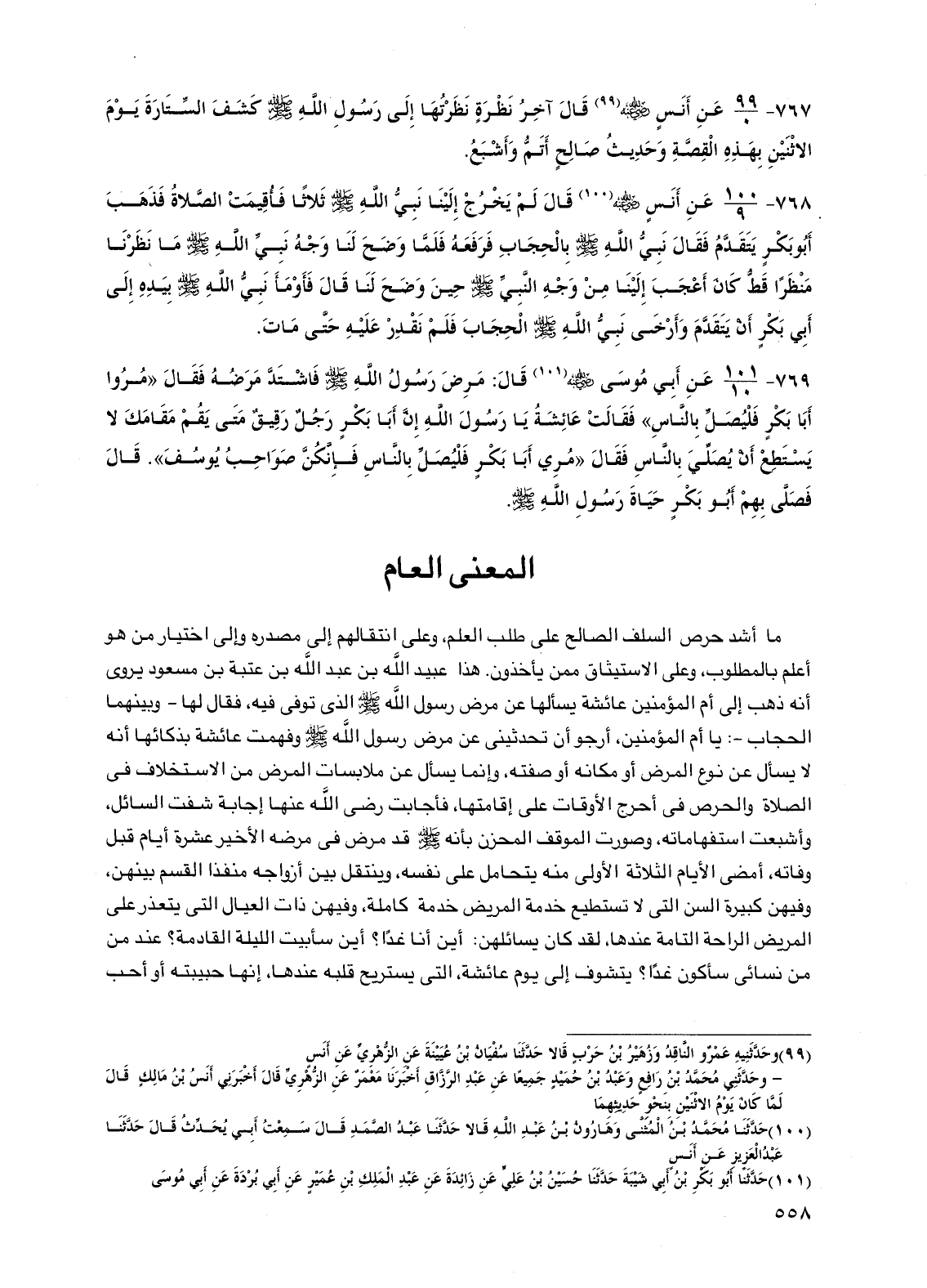ما أشد حرص السلف الصالح على طلب العلم، وعلى انتقالهم إلى مصدره وإلى اختيار من هو أعلم بالمطلوب، وعلى الاستيثاق ممن يأخذون. هذا عبيد الله بن عبد الله بن عتبة بن مسعود يروي أنه ذهب إلى أم المؤمنين عائشة يسألها عن مرض رسول الله صلى الله عليه وسلم الذي توفي فيه، فقال لها -وبينهما الحجاب-: يا أم المؤمنين، أرجو أن تحدثيني عن مرض رسول الله صلى الله عليه وسلم وفهمت عائشة بذكائها أنه لا يسأل عن نوع المرض أو مكانه أو صفته، وإنما يسأل عن ملابسات المرض من الاستخلاف في الصلاة والحرص في أحرج الأوقات على إقامتها، فأجابت رضي الله عنها إجابة شفت السائل، وأشبعت استفهاماته، وصورت الموقف المخزن بأنه صلى الله عليه وسلم قد مرض في مرضه الأخير عشرة أيام قبل وفاته، أمضى الأيام الثلاثة الأولى منه يتحامل على نفسه، وينتقل بين أزواجه منفذا القسم بينهن، وفيهن كبيرة السن التي لا تستطيع خدمة المريض خدمة كاملة، وفيهن ذات العيال التي يتعذر على المريض الراحة التامة عندها، لقد كان يسائلهن: أين أنا غدا؟ أين سأبيت الليلة القادمة؟ عند من من نسائي سأكون غدا؟ يتشوف إلى يوم عائشة، التي يستريح قلبه عندها، إنها حبيبته أو أحب