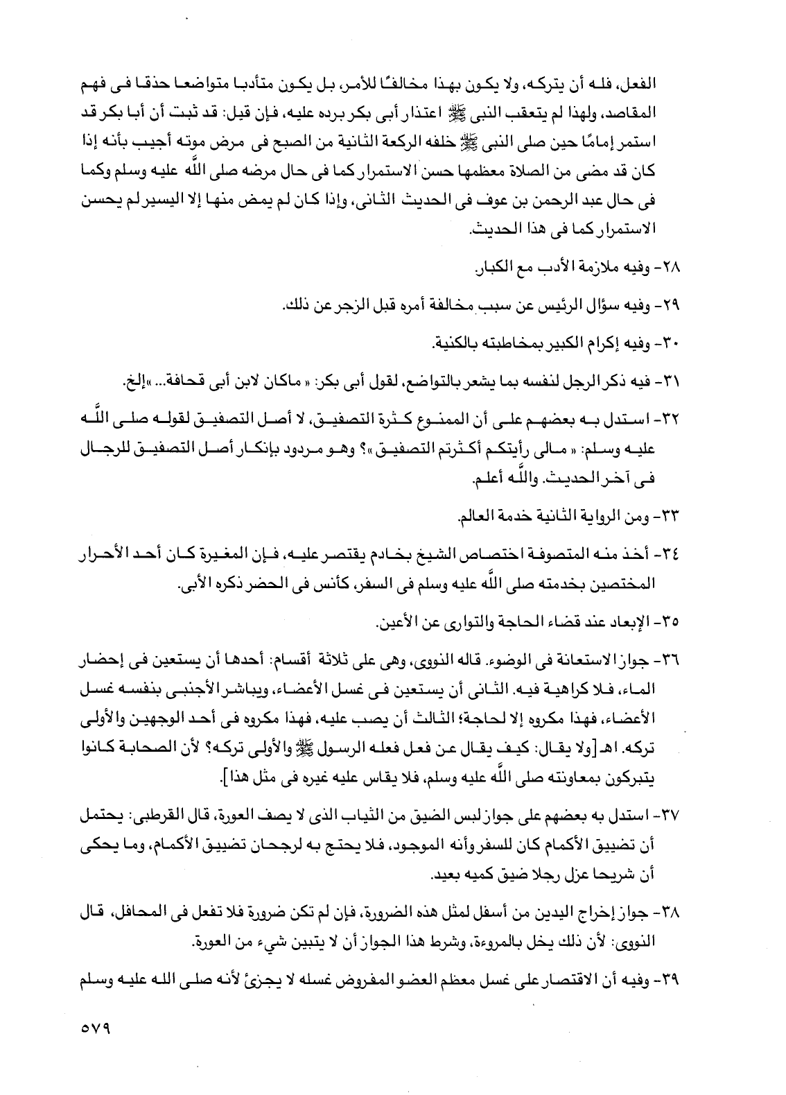 34 - أخذ منه المتصوفة اختصاص الشيخ بخادم يقتصر عليه، فإن المغيرة كان أحد الأحرار المختصين بخدمته صلى الله عليه وسلم في السفر، كأنس في الحضر ذكره الأبي.