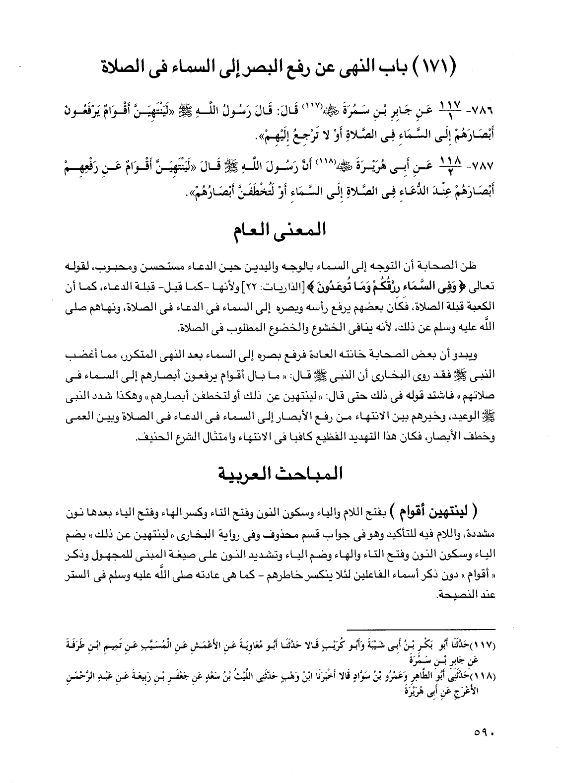 (171) باب النهي عن رفع البصر إلى السماء في الصلاة