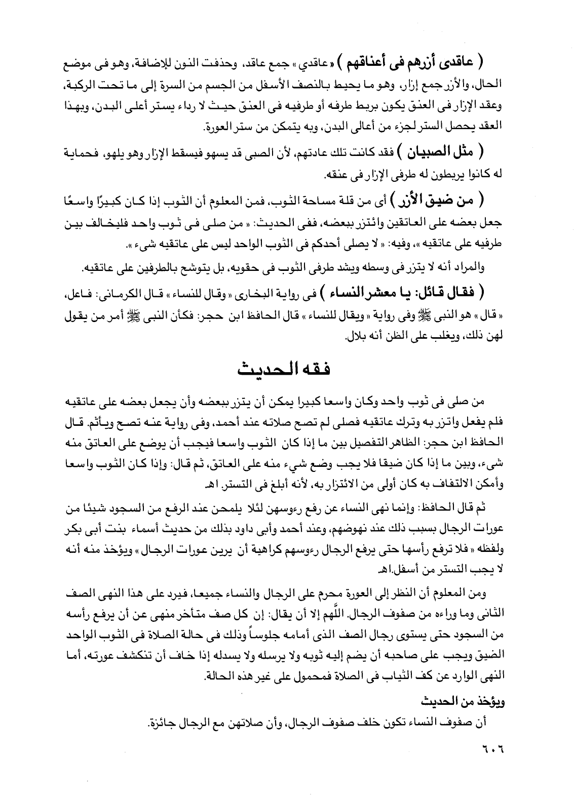 ثم قال الحافظ: وإنما نهي النساء عن رفع رءوسهن لئلا يلمحن عند الرفع من السجود شيئا من عورات الرجال بسبب ذلك عند نهوضهم، وعند أحمد وأبي داود بذلك من حديث أسماء بنت أبي بكر ولفظه "فلا ترفع رأسها حتى يرفع الرجال رءوسهم كراهية أن يرين عورات الرجال" ويؤخذ منه أنه لا يجب التستر من أسفل. اهـ.