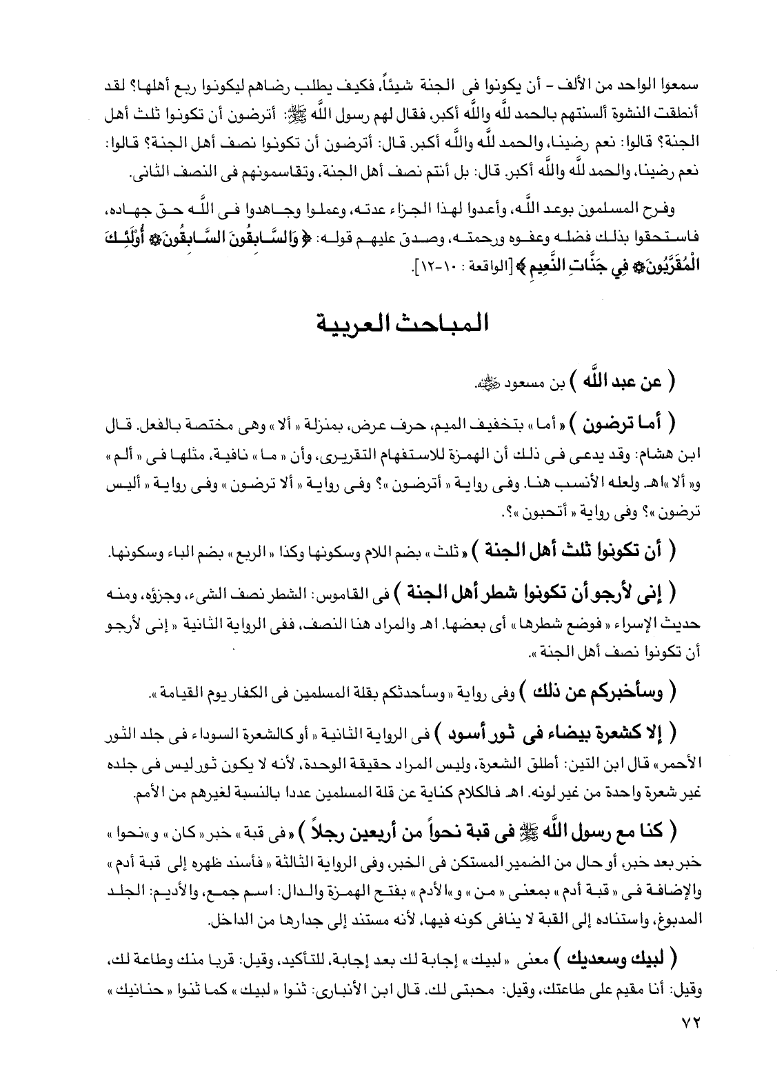 (أن تكونوا ثلث أهل الجنة) "ثلث" بضم اللام وسكونها وكذا "الربع" بضم الباء وسكونها.