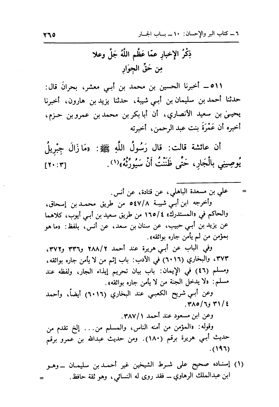 وعن ابن عمر عند البخاري "6015" في الأدب: باب الوصاة بالجار، وفي "الأدب المفرد" "104"، ومسلم "2625"، والبغوي في "شرح السنُّة" "3487".