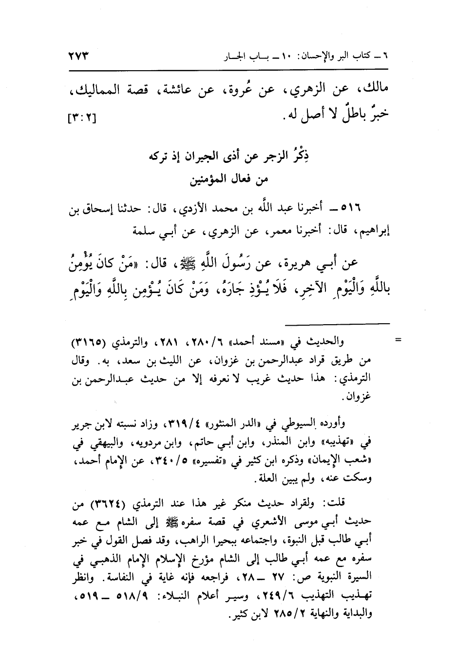 516 - أَخْبَرَنَا عَبْدُ اللَّهِ بْنُ مُحَمَّدٍ الْأَزْدِيُّ قَالَ حَدَّثَنَا إِسْحَاقُ بْنُ إِبْرَاهِيمَ قَالَ أَخْبَرَنَا مَعْمَرٌ عَنِ الزُّهْرِيِّ عَنْ أَبِي سَلَمَةَ