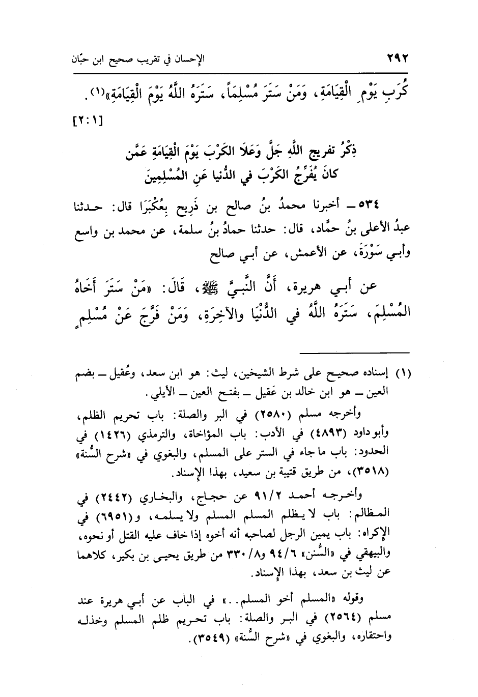 كُرَبِ يَوْمِ الْقِيَامَةِ وَمَنْ سَتَرَ مُسْلِمًا سَتَرَهُ الله يوم القيامة" 1. [1: 2]