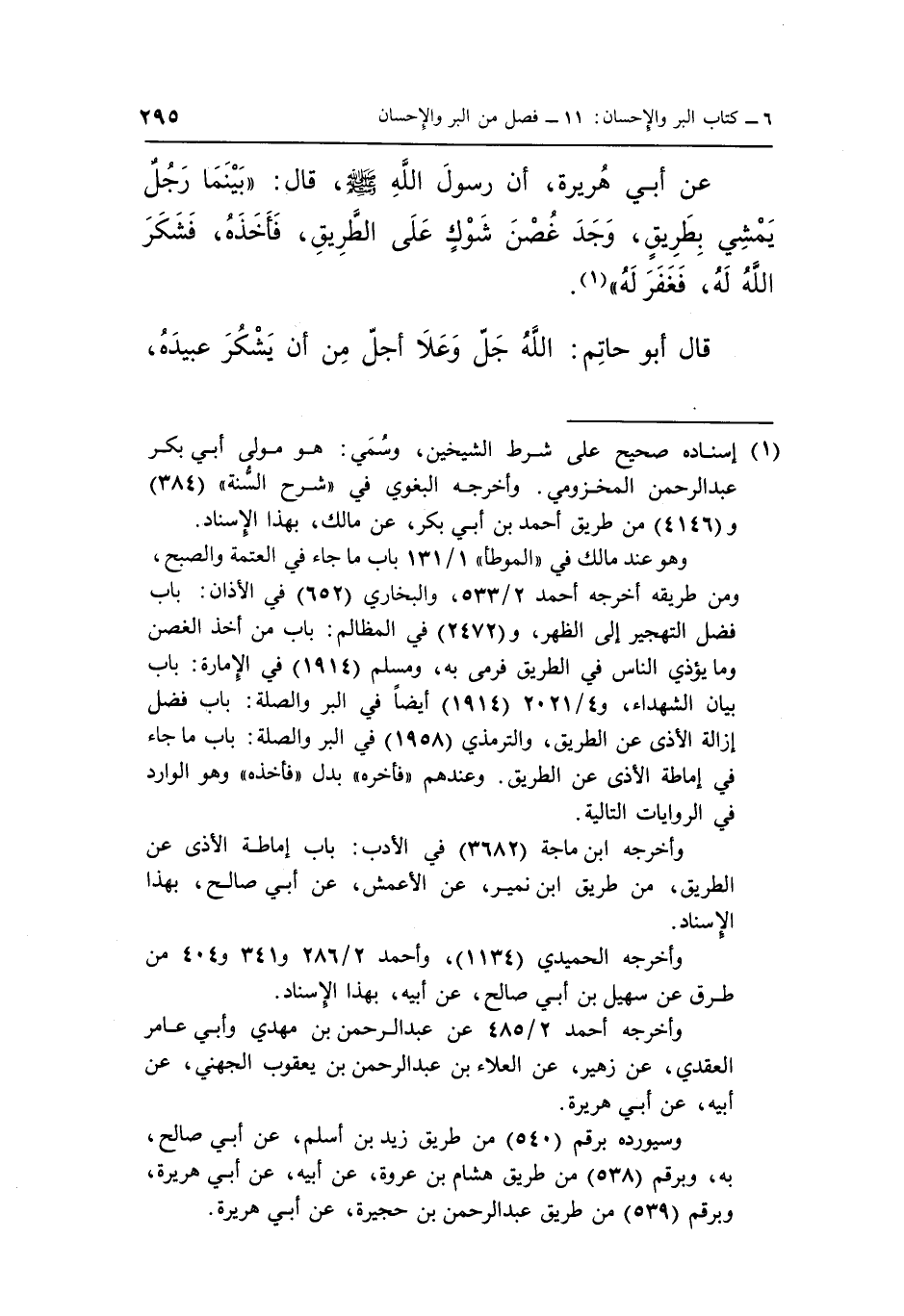 وأخرجه ابن ماجة "3682" في الأدب: باب إماطة الأذى عن الطريق، من طريق ابن نمير، عن الأعمش، عن أبي صالح، بهذا الإسناد.
