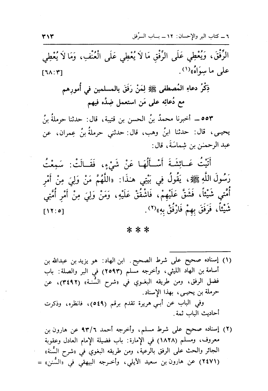 أَتَيْتُ عَائِشَةَ أَسْأَلُهَا عَنْ شَيْءٍ فَقَالَتْ سَمِعْتُ رَسُولَ اللَّهِ صَلَّى اللَّهُ عَلَيْهِ وَسَلَّمَ يَقُولُ فِي بَيْتِي هَذَا "اللَّهُمَّ مَنْ وَلِيَ مِنْ أَمْرِ أُمَّتِي شَيْئًا فَشَقَّ عَلَيْهِمْ فَاشْقُقْ عَلَيْهِ وَمَنْ وَلِيَ مِنْ أَمَرِ أُمَّتِي شَيْئًا فَرَفَقَ بِهِمْ فَارْفُقْ به" 2. [5: 12]