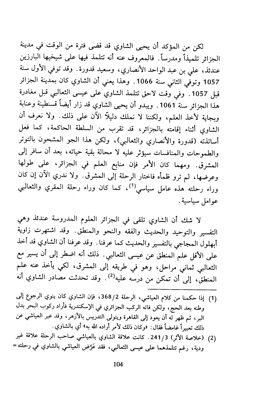 (¬1) إذا حكمنا من كلام العياشي، الرحلة 2/ 368، فإن الشاوي كان ينوي الرجوع إلى وطنه بعد الحج، ولكن فاته الركب الجزائري في الإسكندرية فأراد ركوب البحر بدل البر، ثم ظهر له أن يعود إلى القاهرة ويتولى التدريس بالأزهر، وقد عبر العياشي عن ذلك تعبيرا غامضا فقال: (وكان ذلك لأمر أراده الله به) أي بالشاوي.