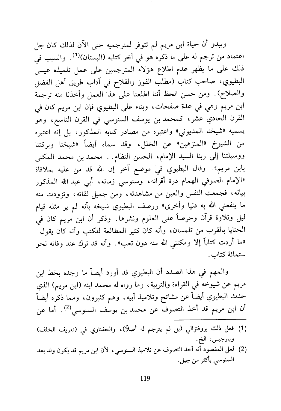 (¬2) لعل المقصود أنه أخذ التصوف عن تلاميذ السنوسي، لأن ابن مريم قد يكون ولد بعدالسنوسي بأكثر من جيل.