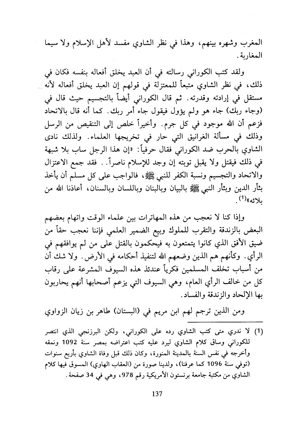 المغرب وشهره بينهم، وهذا في نظر الشاوي مفسد لأهل الإسلام ولا سيما المغاربة.