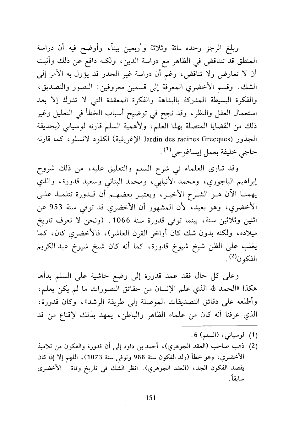 وعلى كل حال فقد عمد قدورة إلى وضع حاشية على السلم بدأها هكذا (الحمد لله الذي علم الإنسان من حقائق التصورات ما لم يكن يعلم، وأطلعه على دقائق التصديقات الموصلة إلى طريقة الرشد)، وكان قدورة، الذي عرفنا أنه كان من علماء الظاهر والباطن، يمهد بذلك لإقناع من قد