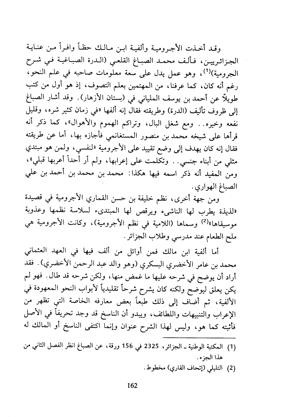 (¬1) المكتبة الوطنية - الجزائر، 2325 في 156 ورقة، عن الصباغ انظر الفصل الثاني من هذا الجزء.