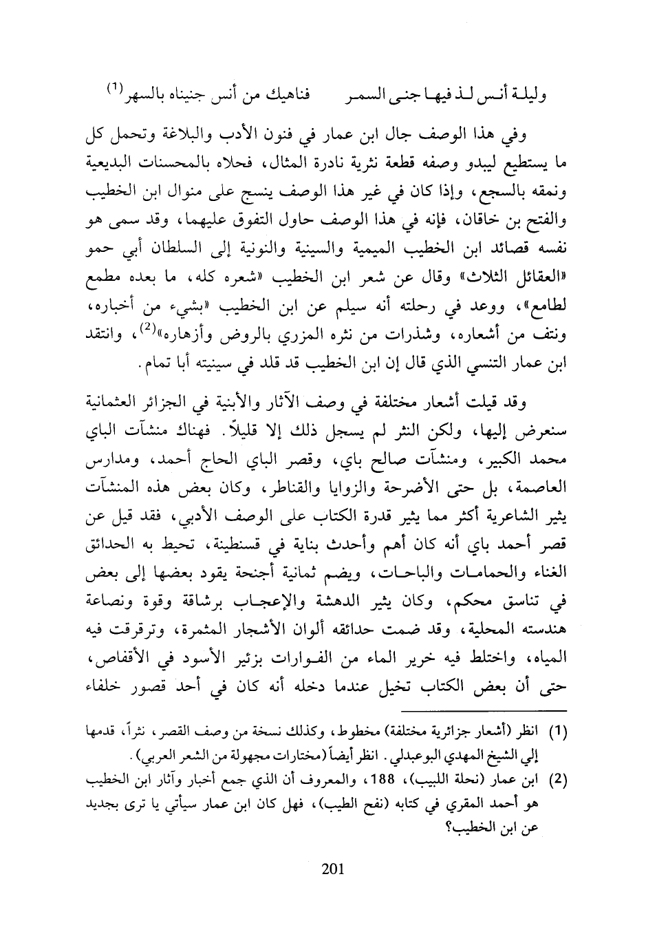 (¬2) ابن عمار (نحلة اللبيب)، 188، والمعروف أن الذي جمع أخبار وآثار ابن الخطيب هو أحمد المقري في كتابه (نفح الطيب)، فهل كان ابن عمار سيأتي يا ترى بجديد عن ابن الخطيب؟