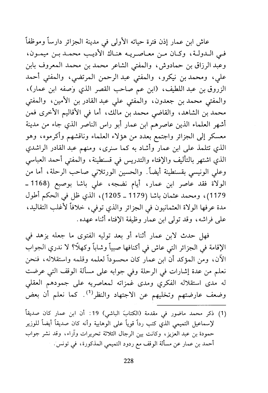 (¬1) ذكر محمد ماضور في مقدمة (الكتاب الباشي) 19: أن ابن عمار كان صديقا لإسماعيل التميمي الذي كتب ردا قويا على الوهابية وأنه كان صديقا أيضا للوزير حمودة بن عبد العزيز، وكانت بين الرجال الثلاثة تحريرات وآراء، وقد نشر جواب أحمد بن عمار عن مسألة الوقف مع ردود التميمي المذكورة، في تونس.