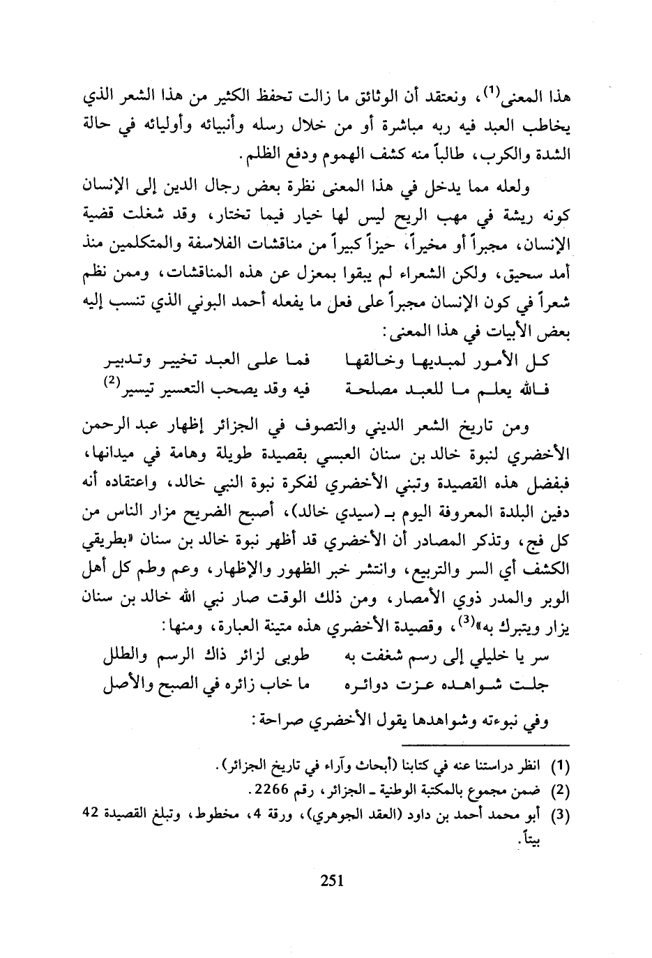 (¬1) انظر دراستنا عنه في كتابنا (أبحاث وآراء في تاريخ الجزائر).