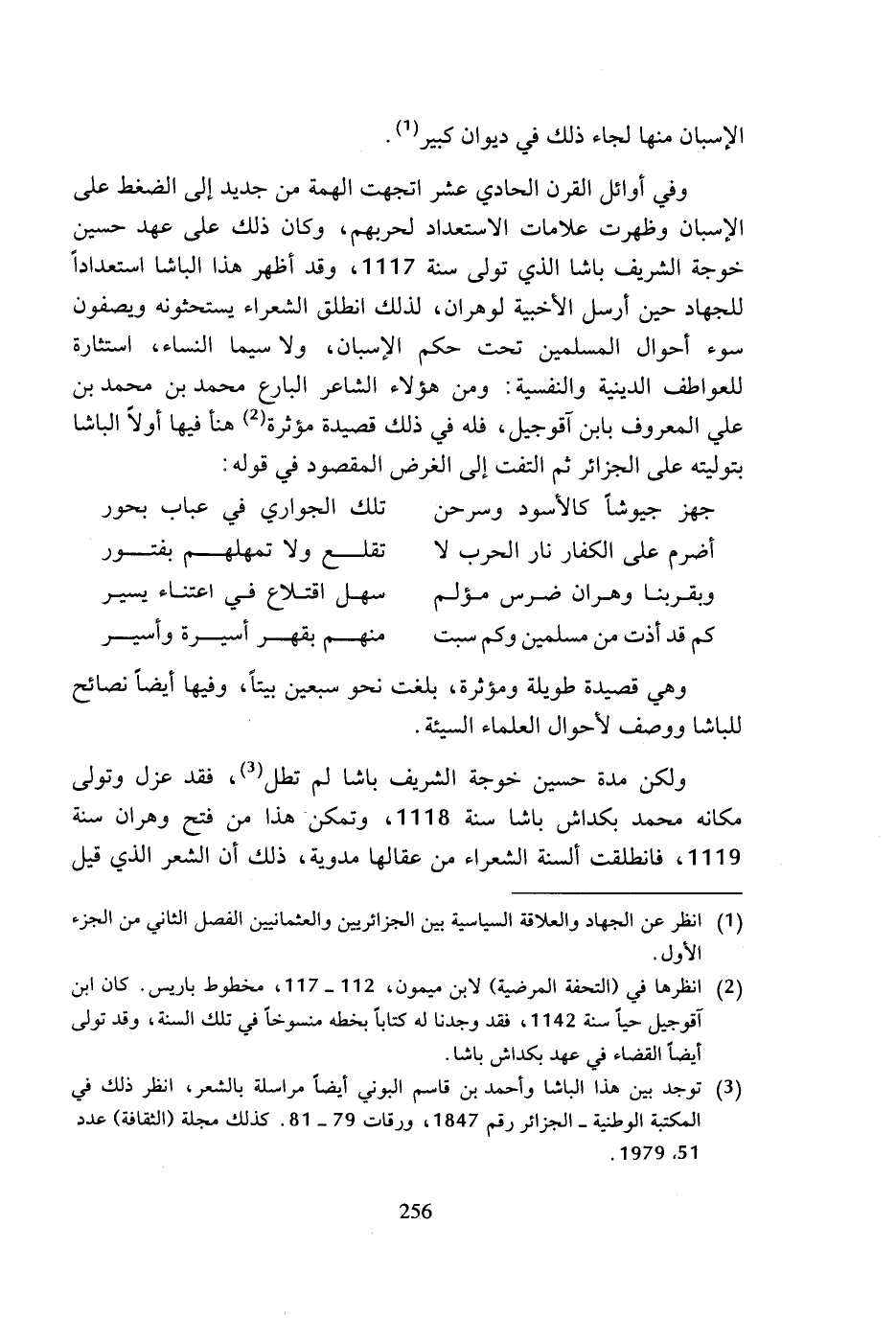(¬3) توجد بين هذا الباشا وأحمد بن قاسم البوني أيضا مراسلة بالشعر، انظر ذلك في المكتبة الوطنية - الجزائر رقم 1847، ورقات 79 - 81. كذلك مجلة (الثقافة) عدد 51، 1979.