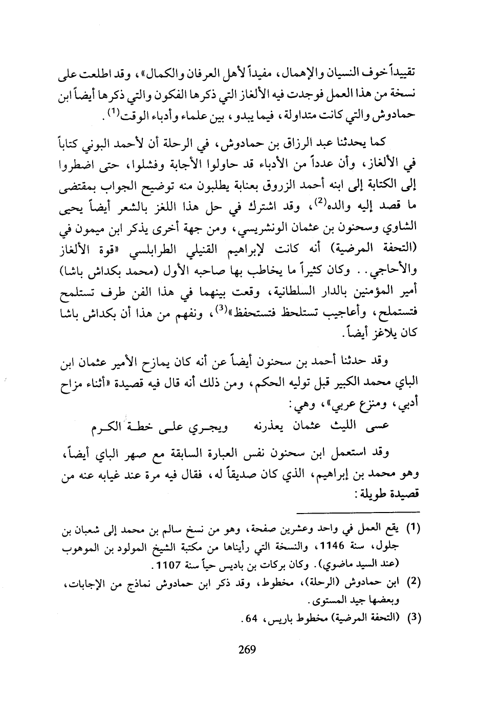 (¬2) ابن حمادوش (الرحلة)، مخطوط، وقد ذكر ابن حمادوش نماذج من الإجابات، وبعضها جيد المستوى.