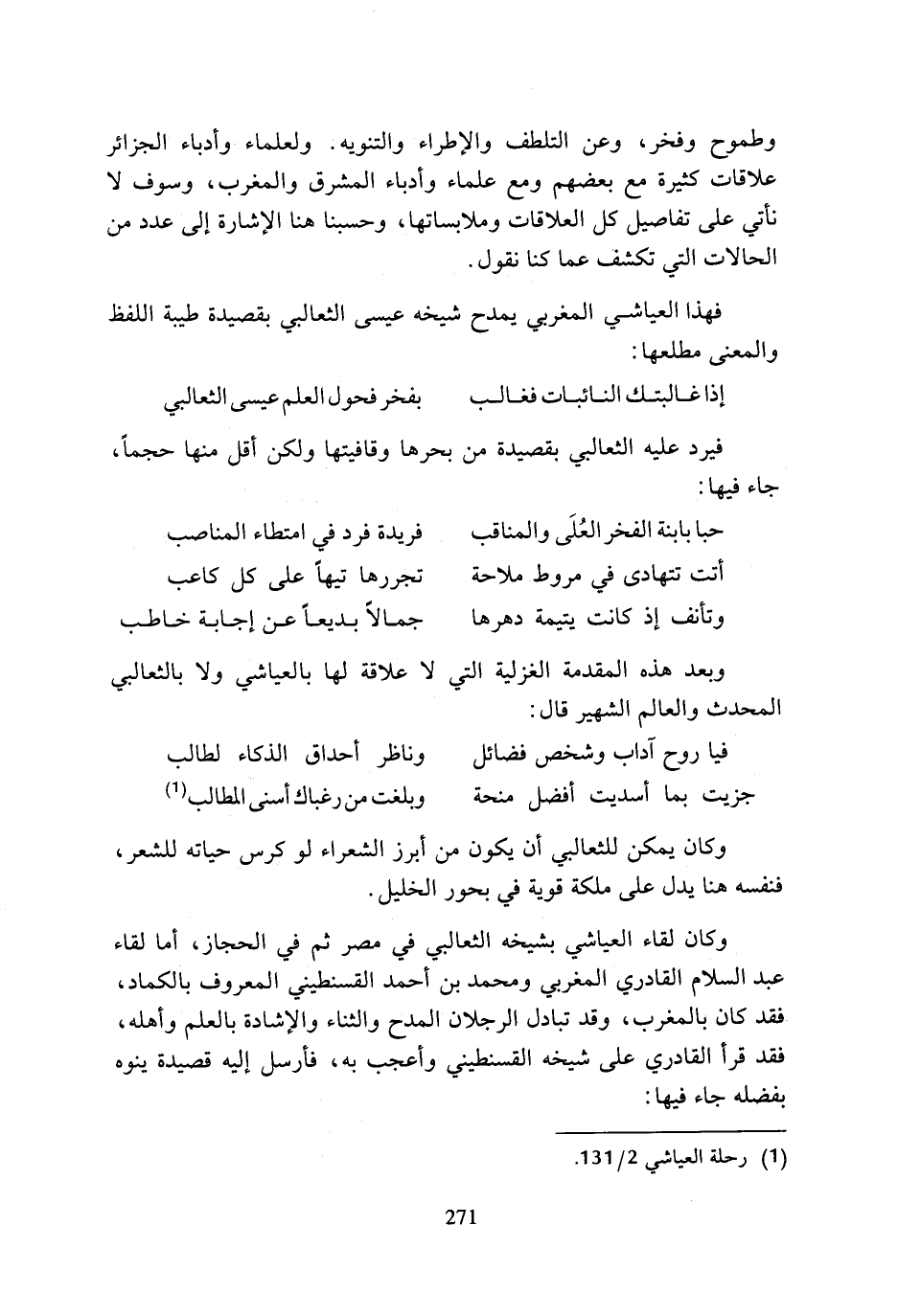 فهذا العياشي المغربي يمدح شيخه عيسى الثعالبي بقصيدة طيبة اللفظ والمعنى مطلعها: