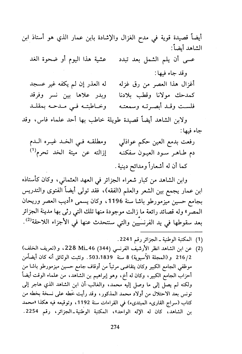 (¬2) عن ابن الشاهد انظر الأرشيف الفرنسي (344) 46 - 228 Mi، و (تعريف الخلف) 2/ 216 و (المجلة الآسيوي) 8 سنة 1839، 503. وتثبت الوثائق أنه كان أيضا من
