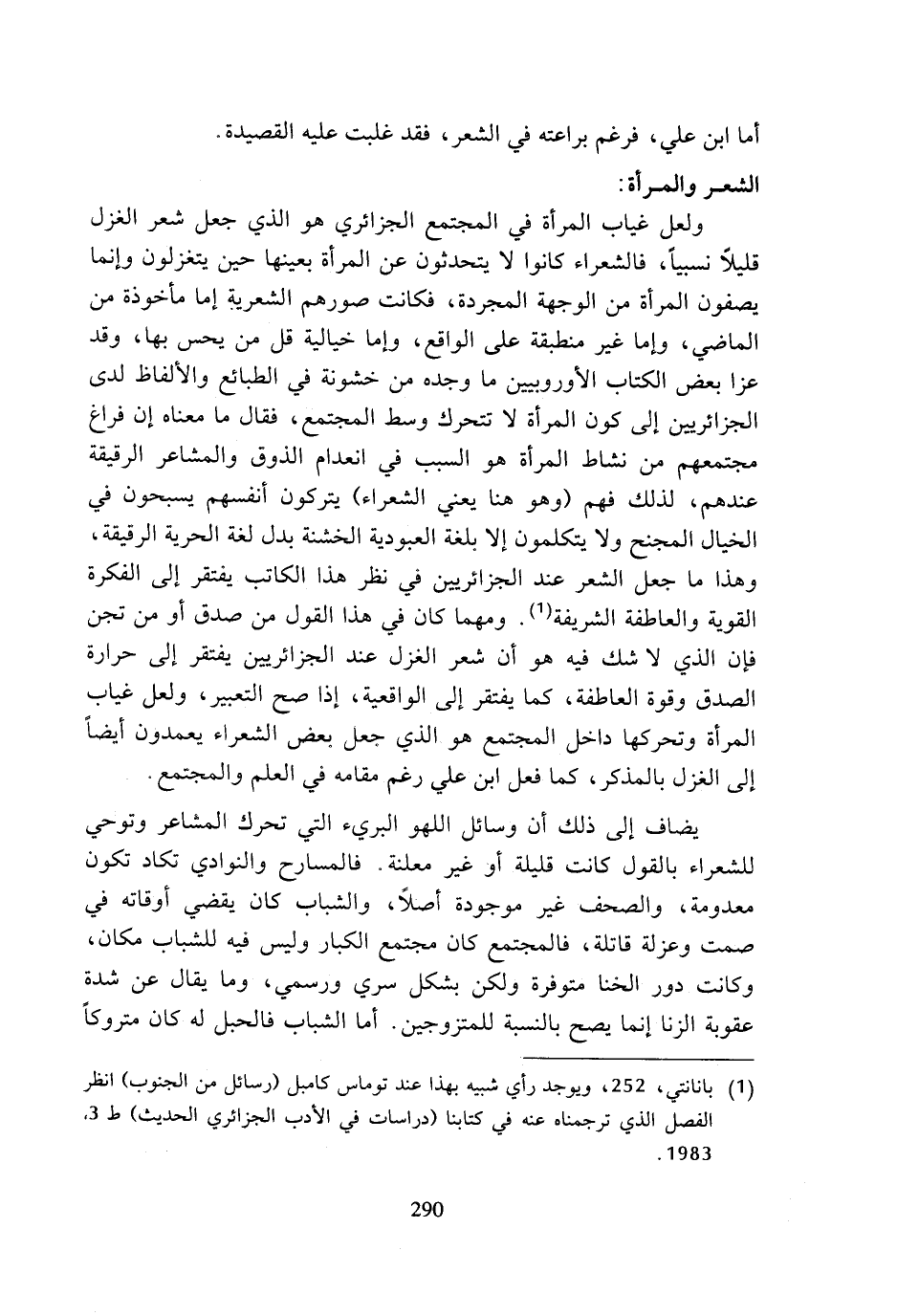 (¬1) بانانتي، 252، ويوجد رأي شبيه بهذا عند توماس كامبل (رسائل من الجنوب) انظر الفصل الذي ترجمناه عنه في كتابنا (دراسات في الأدب الجزائري الحديث) ط 3، 1983.