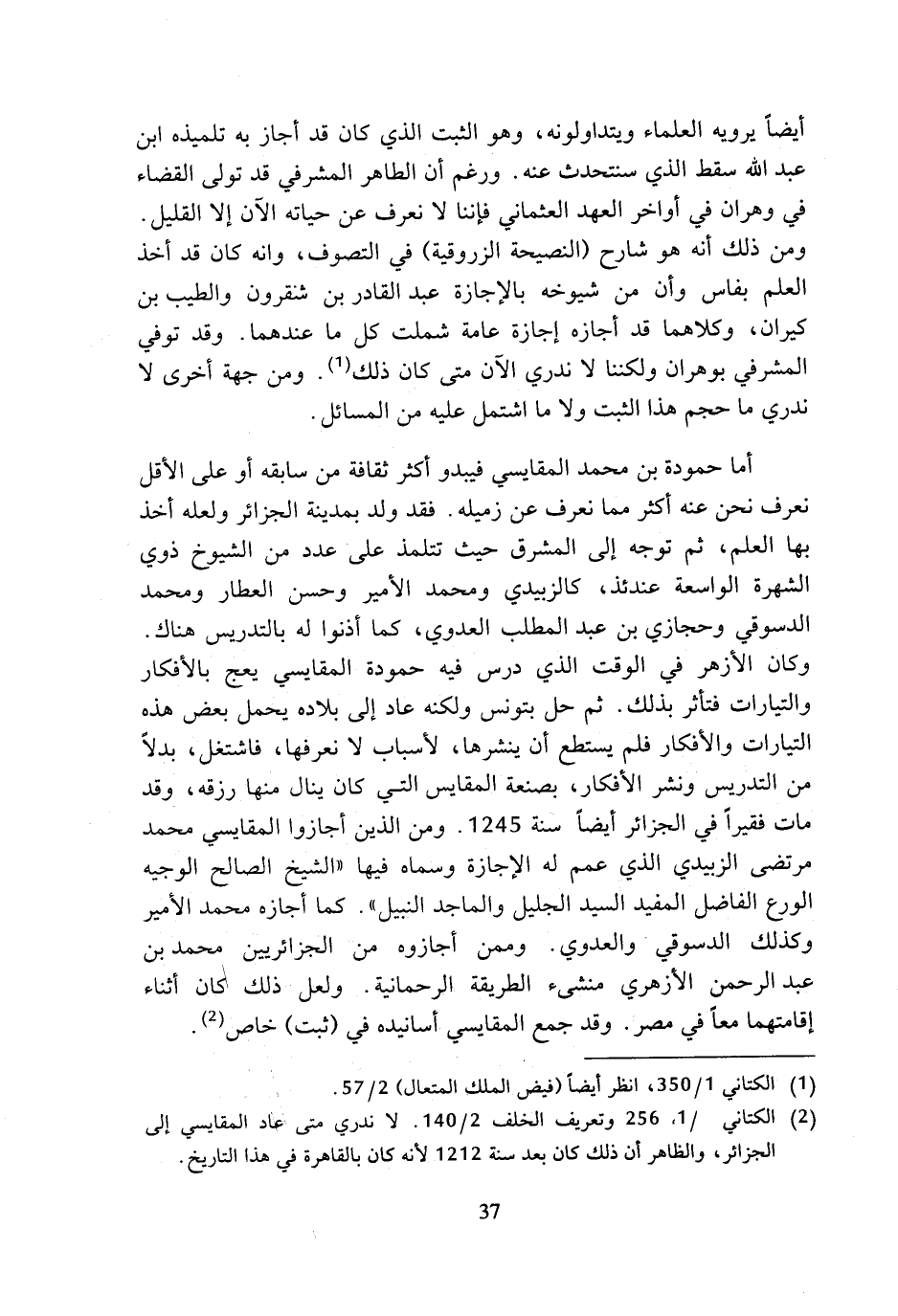 (¬2) الكتاني 1/ 256 وتعريف الخلف 2/ 140. لا ندري متى عاد المقايسي إلى الجزار، والظاهر أن ذلك كان بعد سنة 1212 لأنه كان بالقاهرة في هذا التاريخ.
