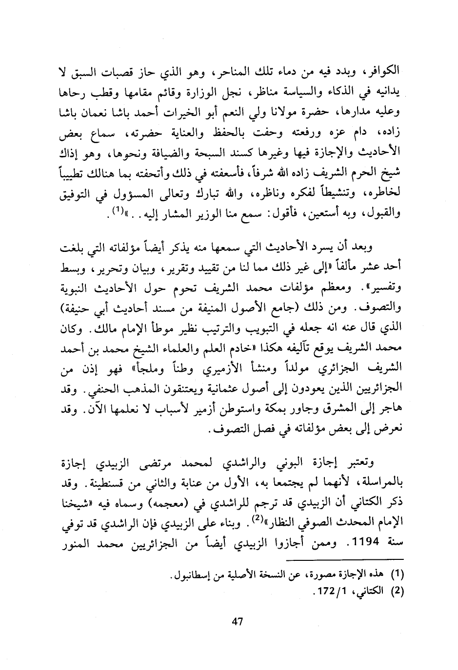 (¬1) هذه الإجازة مصورة، عن النسخة الأصلية من إسطانبول.
