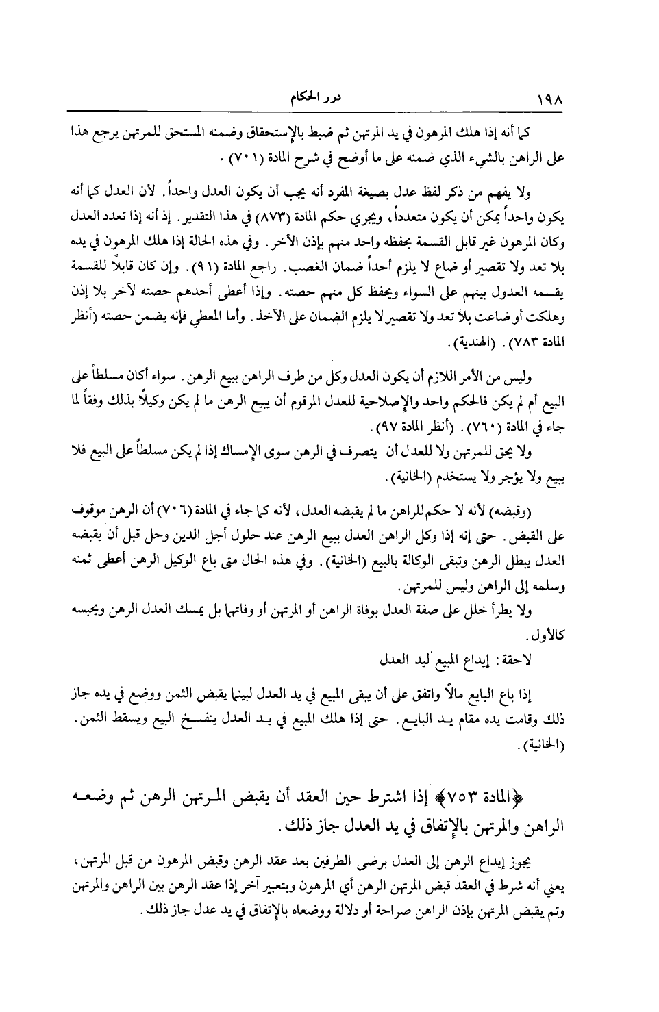 [ (الْمَادَّةُ 753) اُشْتُرِطَ حِينَ الْعَقْدِ قبض الْمُرْتَهِنُ الرَّهْنَ ثُمَّ وَضَعَاهُ فِي يَدِ عَدْل]