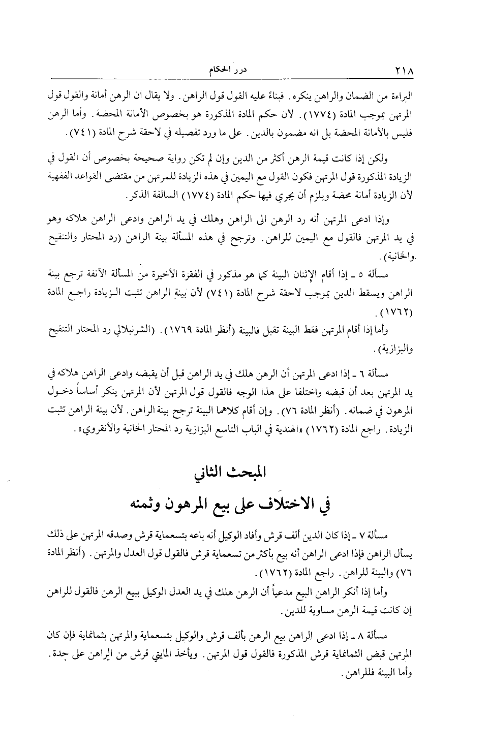 الْبَرَاءَةَ مِنْ الضَّمَانِ وَالرَّاهِنُ يُنْكِرُهُ فَبِنَاءً عَلَيْهِ الْقَوْلُ قَوْلُ الرَّاهِنِ. وَلَا يُقَالُ إنَّ الرَّهْنَ أَمَانَةٌ وَالْقَوْلُ قَوْلُ الْمُرْتَهِنِ بِمُوجِبِ الْمَادَّةِ (1774) . لِأَنَّ حُكْمَ الْمَادَّةِ الْمَذْكُورَةِ هُوَ بِخُصُوصِ الْأَمَانَةِ الْمَحْضَةِ وَأَمَّا الرَّهْنُ فَلَيْسَ بِالْأَمَانَةِ الْمَحْضَةِ بَلْ إنَّهُ مَضْمُونٌ بِالدَّيْنِ. عَلَى مَا وَرَدَ تَفْصِيلُهُ فِي لَاحِقَةِ شَرْحِ الْمَادَّةِ (741) .