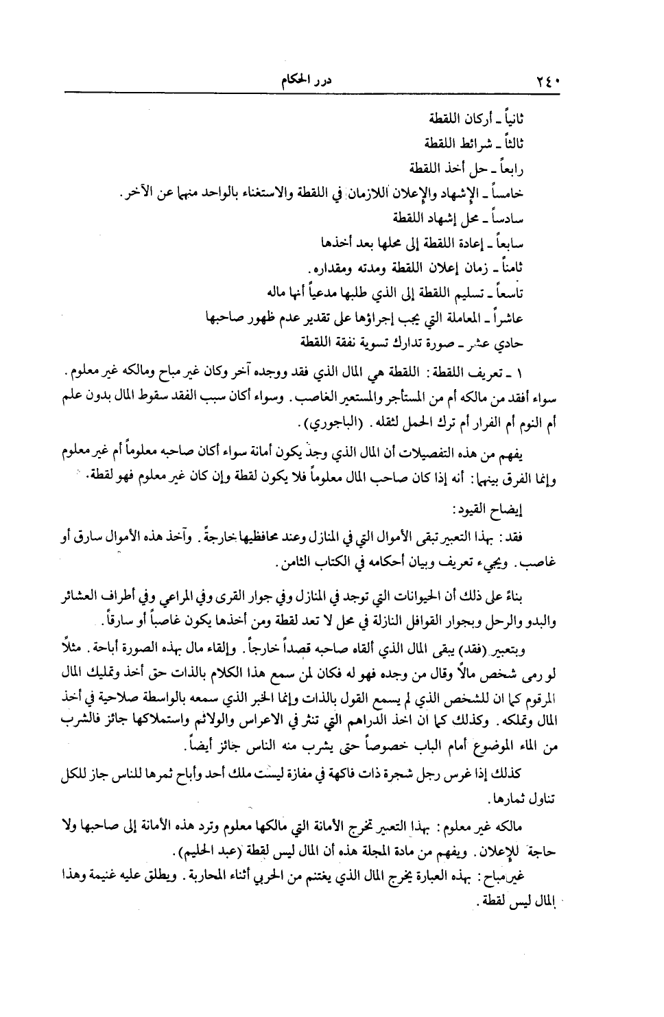 فُقِدَ: بِهَذَا التَّعْبِيرِ تَبْقَى الْأَمْوَالُ الَّتِي فِي الْمَنَازِلِ وَعِنْدَ مُحَافِظِيهَا خَارِجَةً. وَآخِذُ هَذِهِ الْأَمْوَالِ سَارِقٌ أَوْ غَاصِبٌ. وَيَجِيءُ تَعْرِيفُ وَبَيَانُ أَحْكَامِهِ فِي الْكِتَابِ الثَّامِنِ.