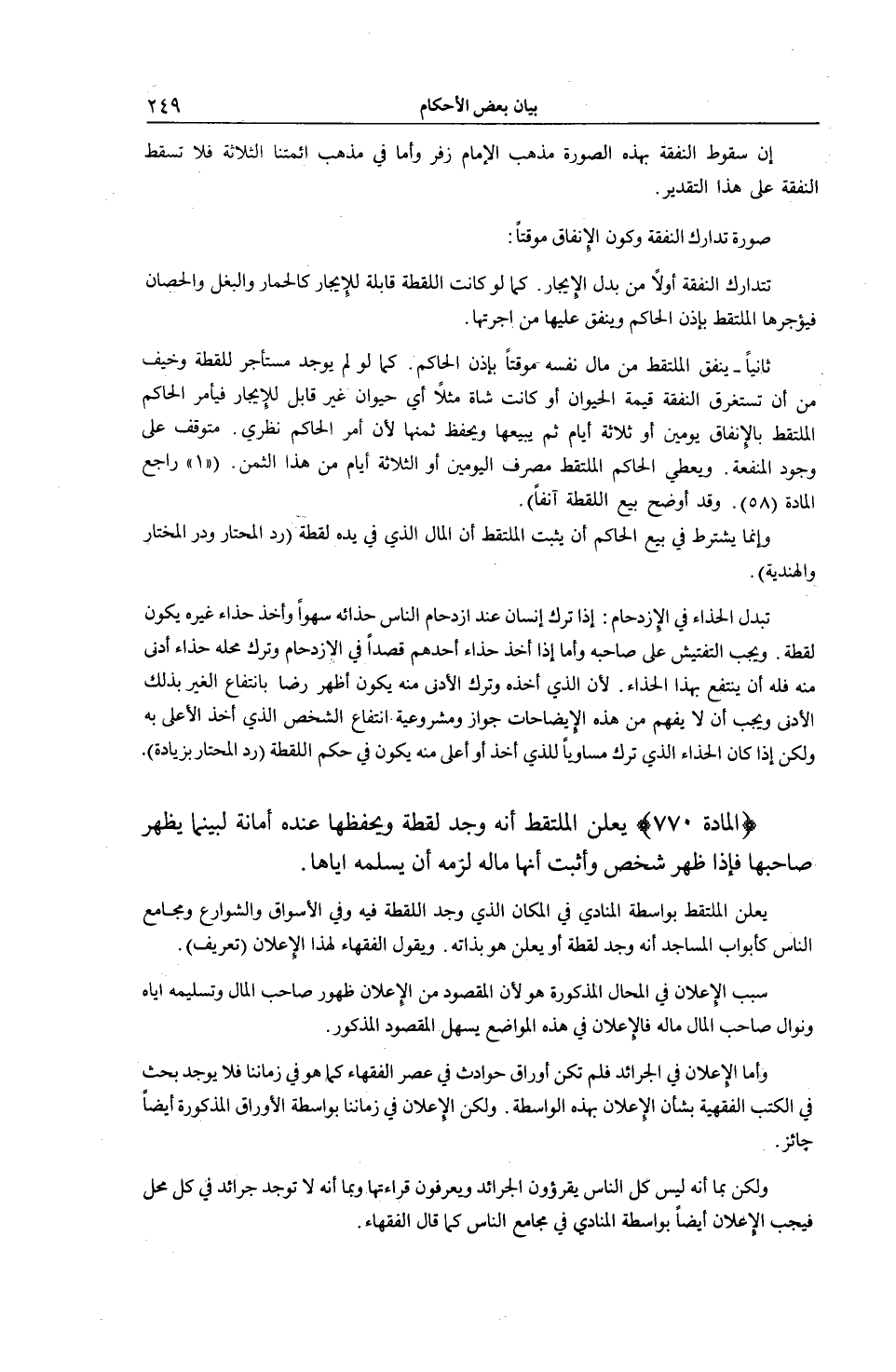 [ (الْمَادَّةُ 770) إعْلَانُ الْمُلْتَقِط أَنَّهُ وَجَدَ لُقَطَةً وَحِفْظُهَا عِنْدَهُ أَمَانَةً]