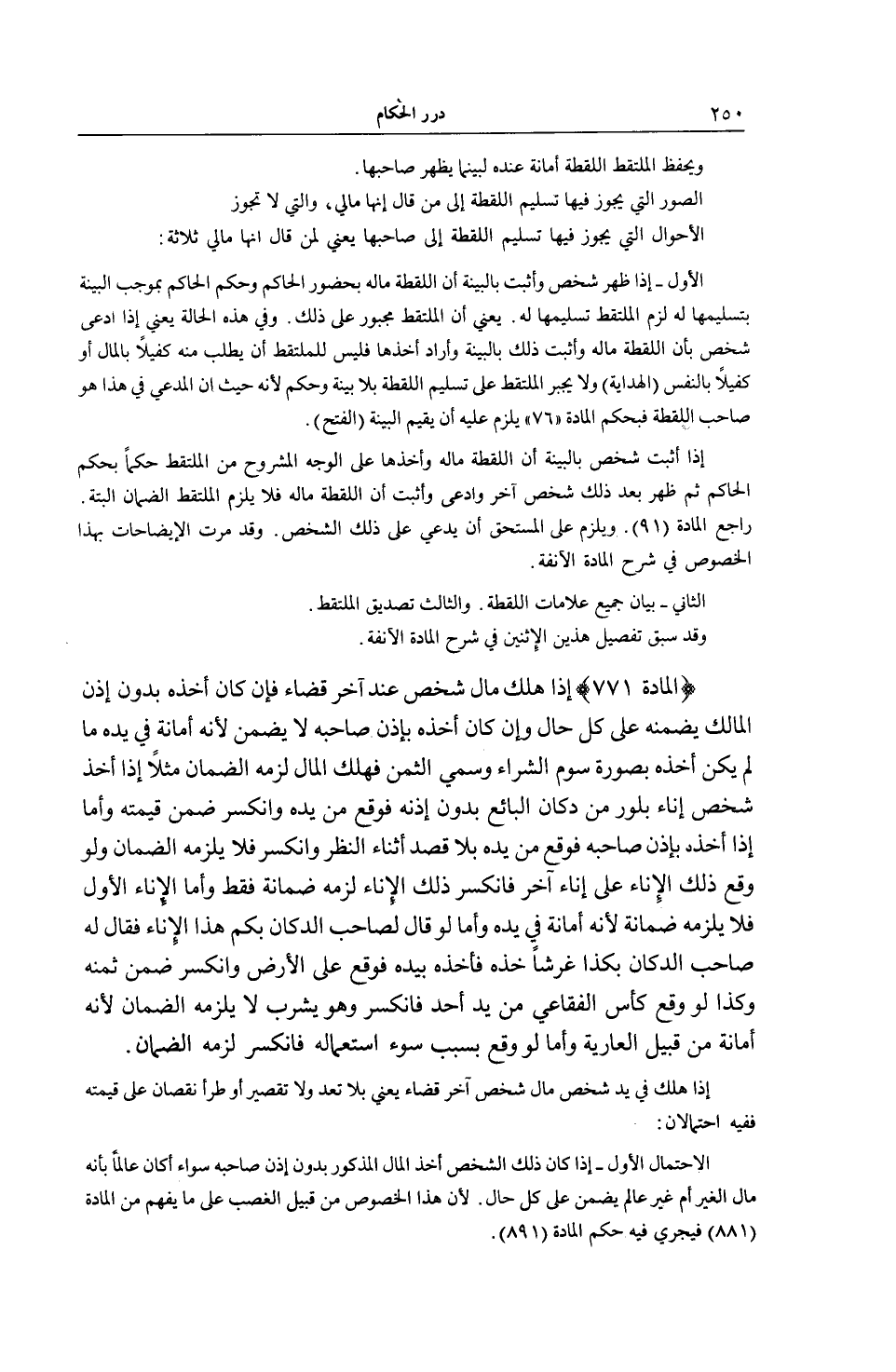 [ (الْمَادَّةُ 771) هَلَكَ مَالُ شَخْصٍ عِنْدَ آخَرَ قَضَاءً]