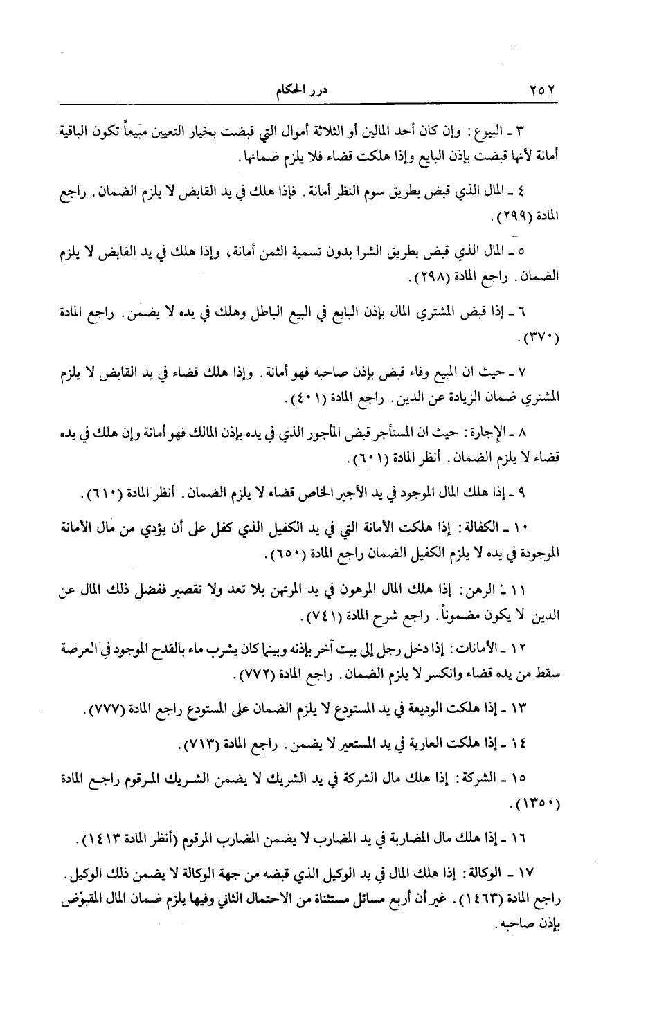 4 - الْمَالُ الَّذِي قُبِضَ بِطَرِيقِ سَوْمِ النَّظَرِ أَمَانَةٌ. فَإِذَا هَلَكَ فِي يَدِ الْقَابِضِ لَا يَلْزَمُ الضَّمَانُ. رَاجِعْ الْمَادَّةَ (299) .