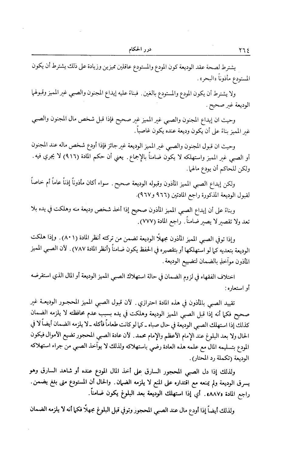 وَلِذَلِكَ إذَا دَلَّ الصَّبِيُّ الْمَحْجُورُ السَّارِقَ عَلَى أَخْذِ الْمَالِ الْمُودَعِ عِنْدَهُ أَوْ شَاهَدَ السَّارِقَ وَهُوَ يَسْرِقُ الْوَدِيعَةَ وَلَمْ يَمْنَعْهُ مَعَ اقْتِدَارِهِ عَلَى الْمَنْعِ لَا يَلْزَمُهُ الضَّمَانُ. وَالْحَالُ أَنَّ الْمُسْتَوْدَعَ مَتَى بَلَغَ يَضْمَنُ. رَاجِعْ الْمَادَّةَ (887) . أَيْ إذَا اسْتَهْلَكَ الْوَدِيعَةَ بَعْدَ الْبُلُوغِ يَكُونُ ضَامِنًا.