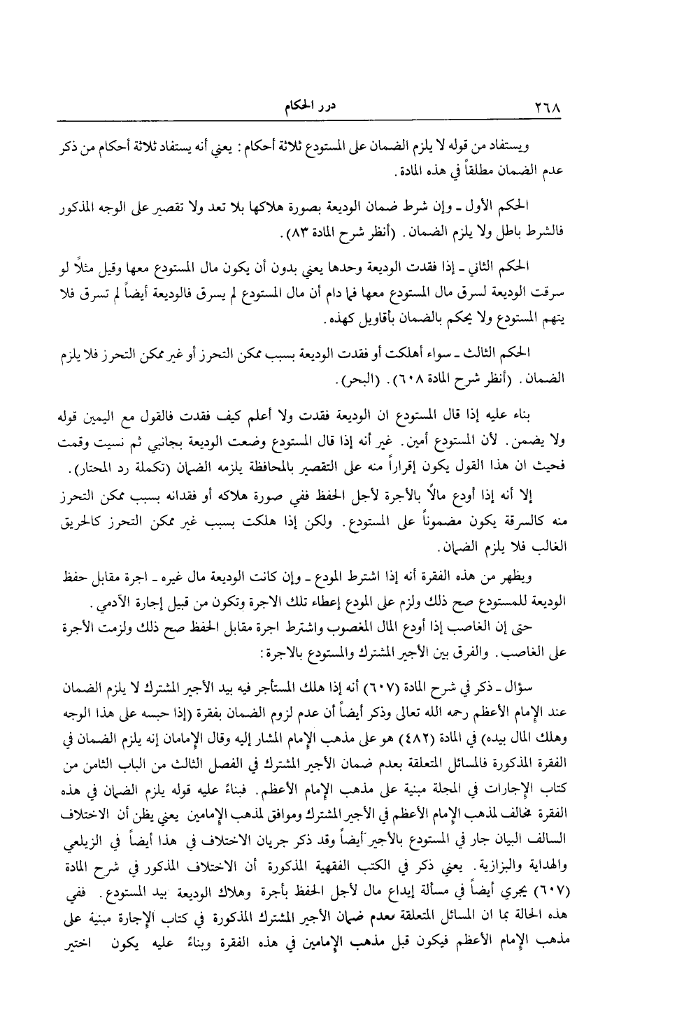وَيُسْتَفَادُ مِنْ قَوْلِهِ: لَا يَلْزَمُ الضَّمَانُ عَلَى الْمُسْتَوْدَعِ ثَلَاثَةُ أَحْكَامٍ: يَعْنِي أَنَّهُ يُسْتَفَادُ ثَلَاثَةُ أَحْكَامٍ مِنْ ذِكْرِ عَدَمِ الضَّمَانِ مُطْلَقًا فِي هَذِهِ الْمَادَّةِ.