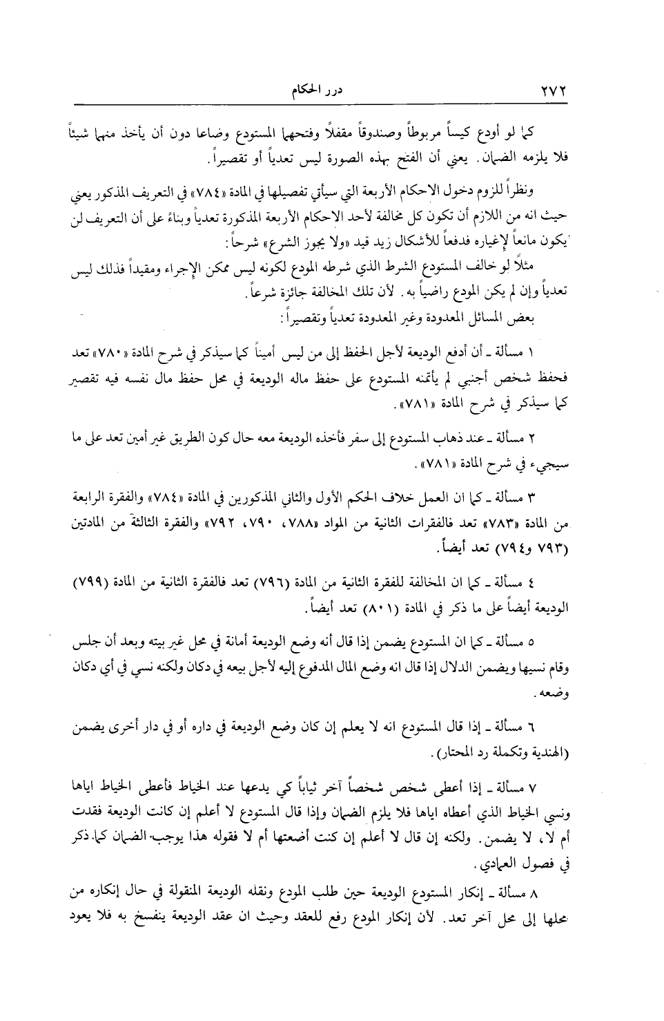 4 - مَسْأَلَةُ - كَمَا أَنَّ الْمُخَالَفَةَ لِلْفِقْرَةِ الثَّانِيَةِ مِنْ الْمَادَّةِ (796) تَعَدٍّ فَالْفِقْرَةُ الثَّانِيَةُ مِنْ الْمَادَّةِ (799) الْوَدِيعَةُ أَيْضًا عَلَى مَا ذُكِرَ فِي الْمَادَّةِ (801) تَعَدٍّ أَيْضًا.